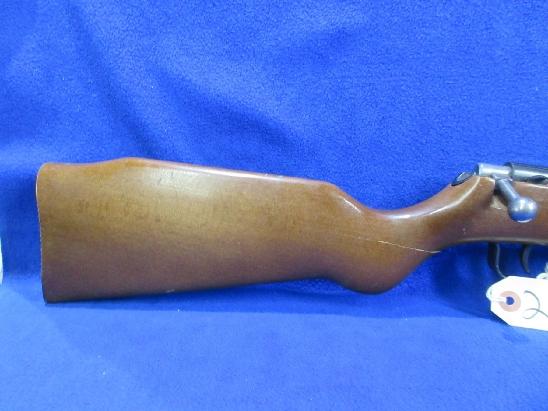 Non-Restricted - Wischo Germany Single Shot in 22 LR - This single shot bolt action rifle appears to be in good to good working order. Barrel is 21 1/4", rifling is good to very good, bluing is good with light pitting, has both sights, stock has a large crack in the wrist area. Ser # 331622