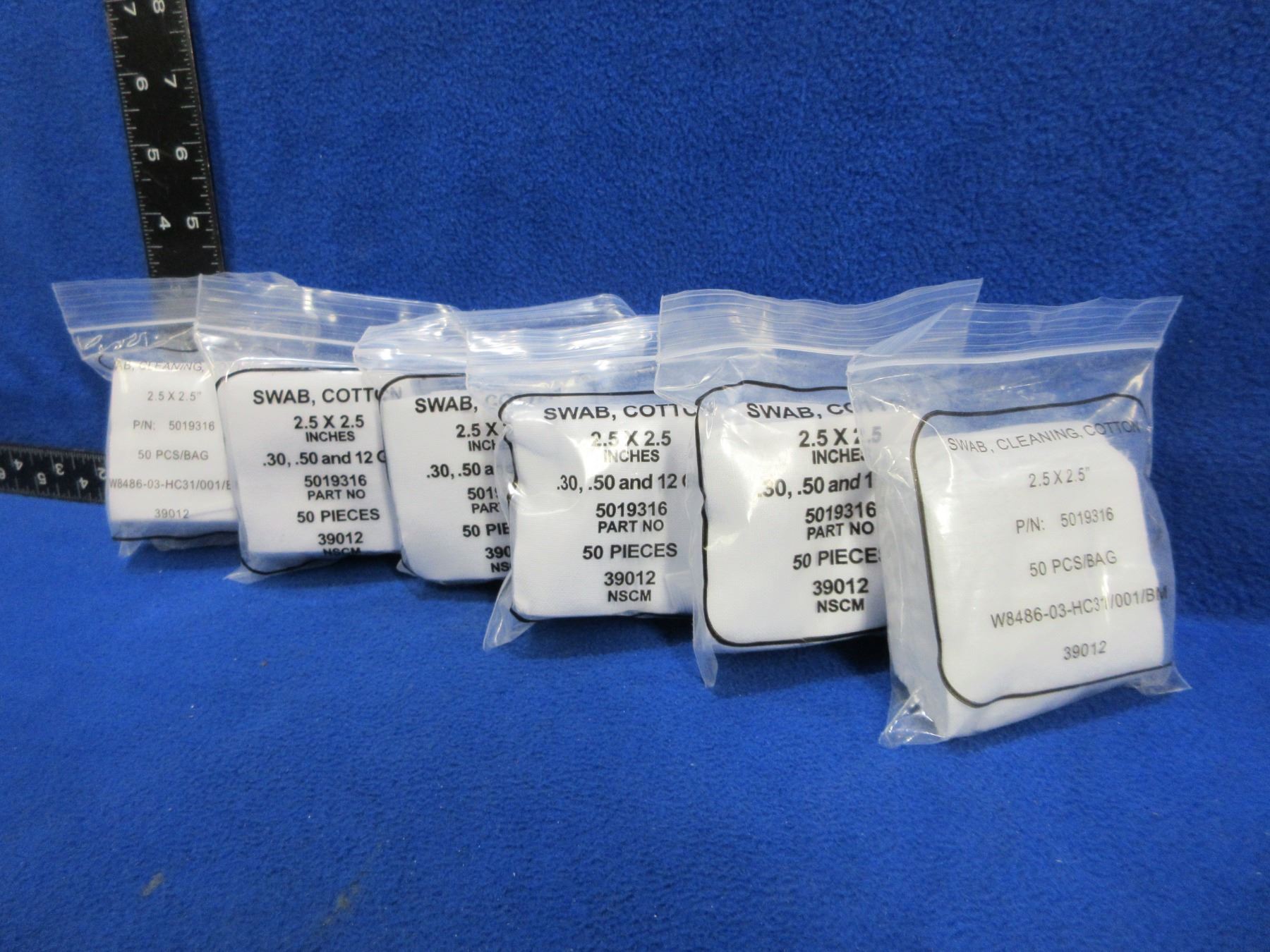 Lot 2198 NEW - Cotton Swabs - 2.5" x 2.5" - 6 Packs of 50