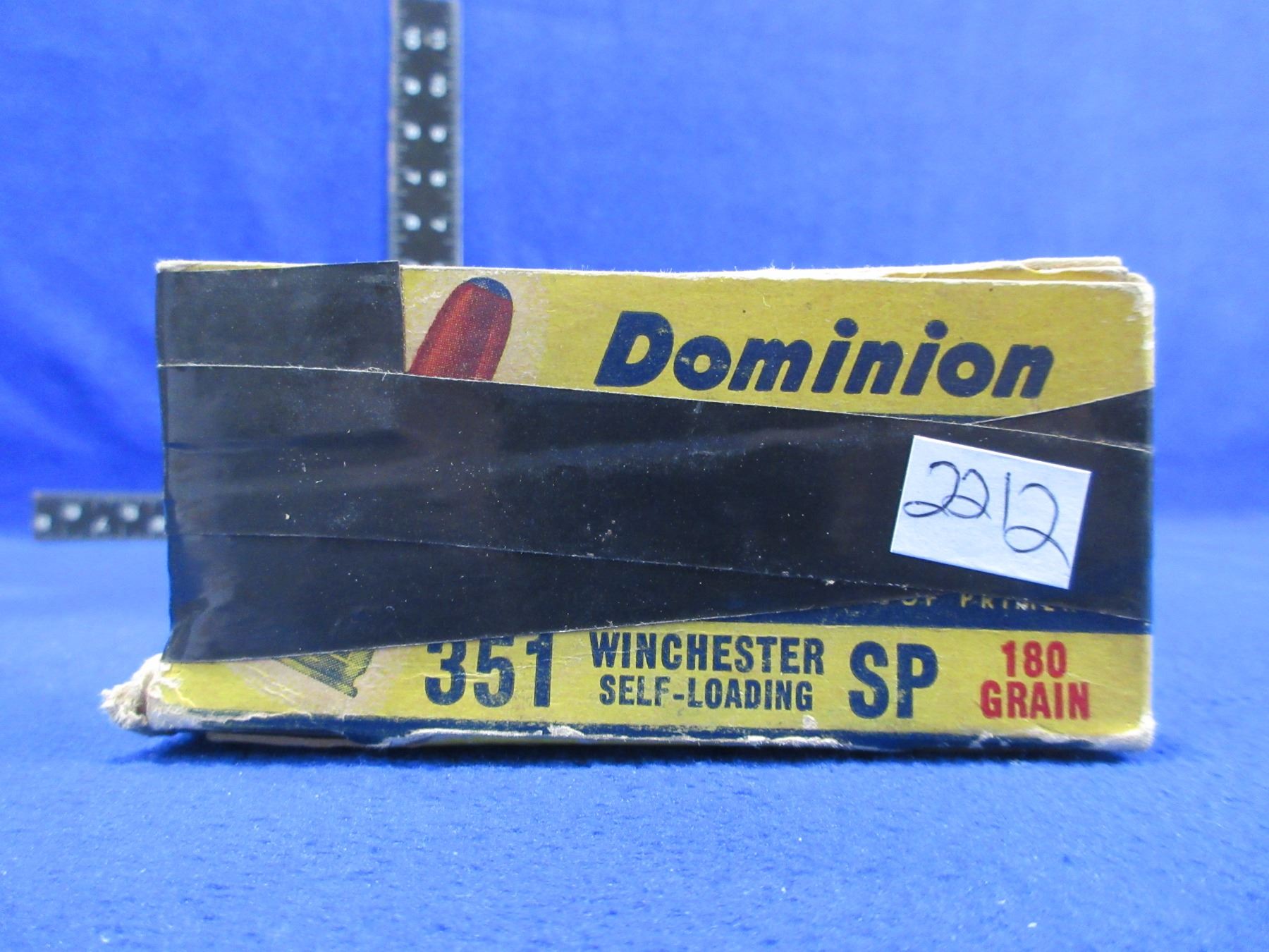 Collector Ammo - 351 Win. 180gr SP Dominion Cartridges - Box of 20, Box is Damaged - PICK UP ONLY