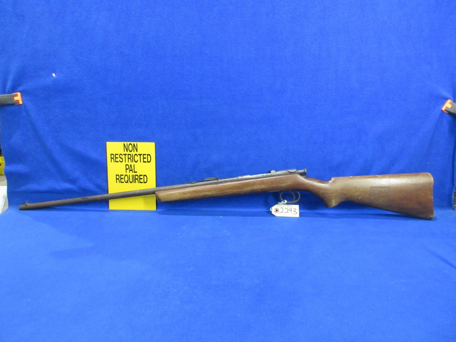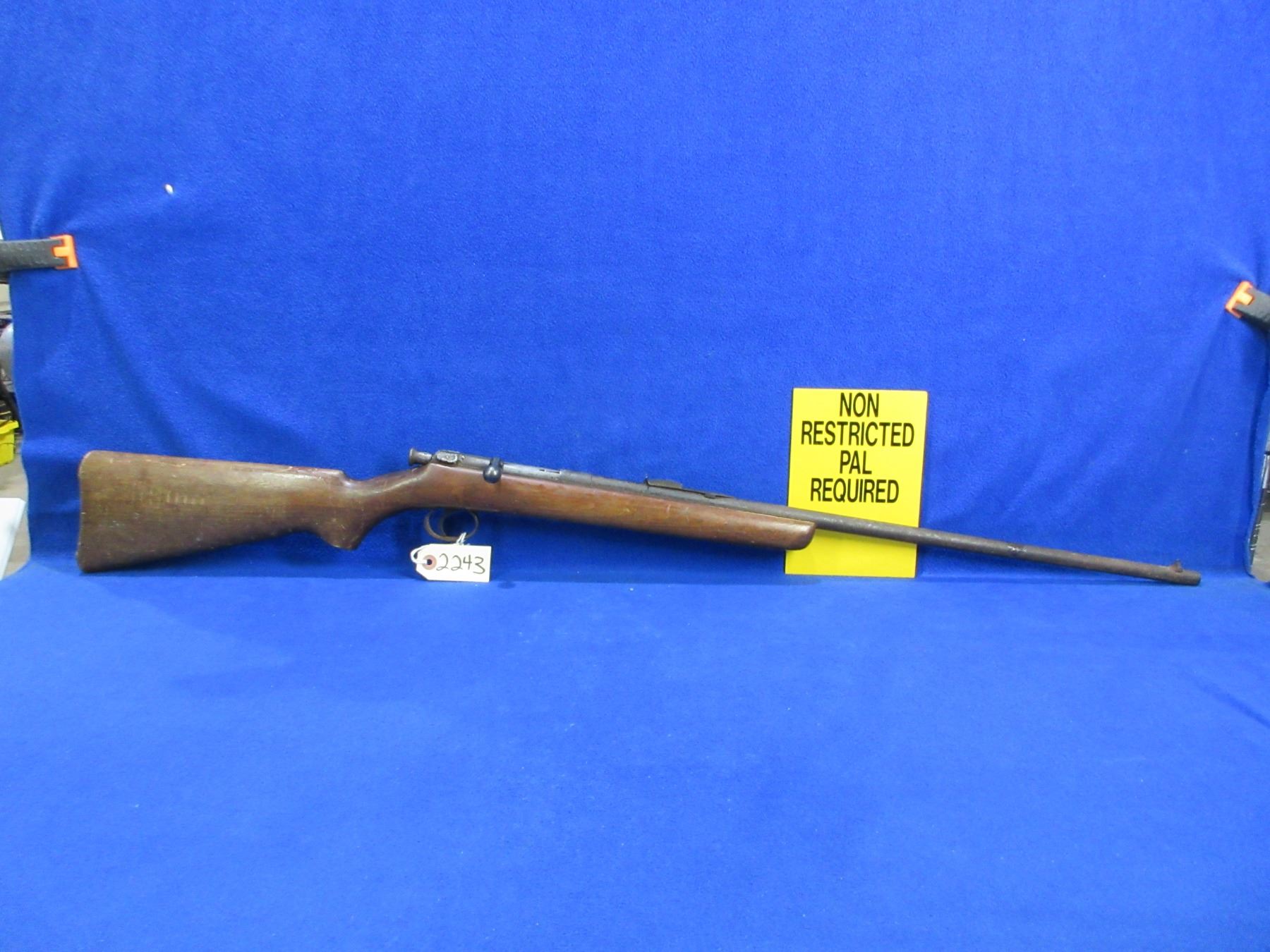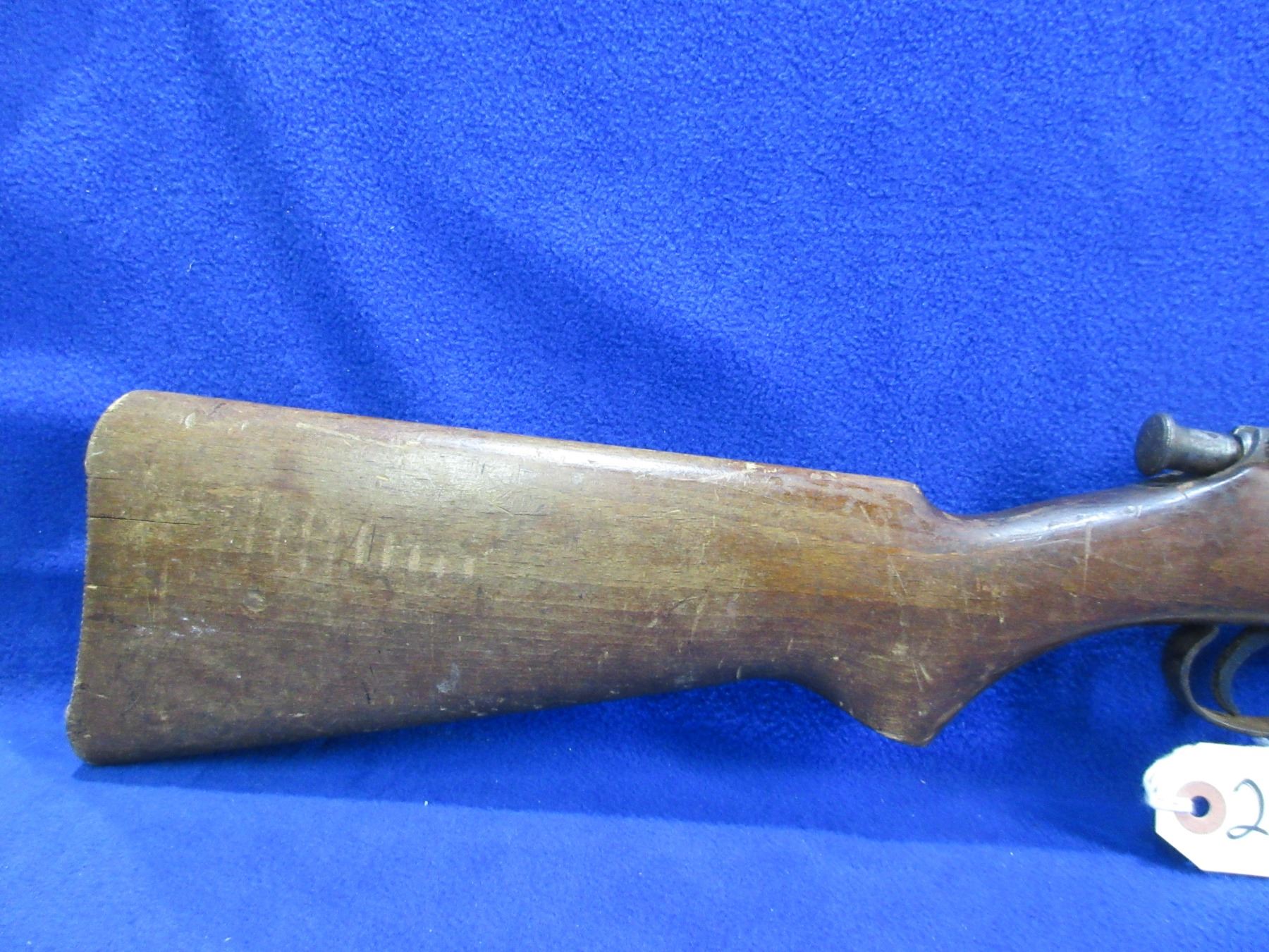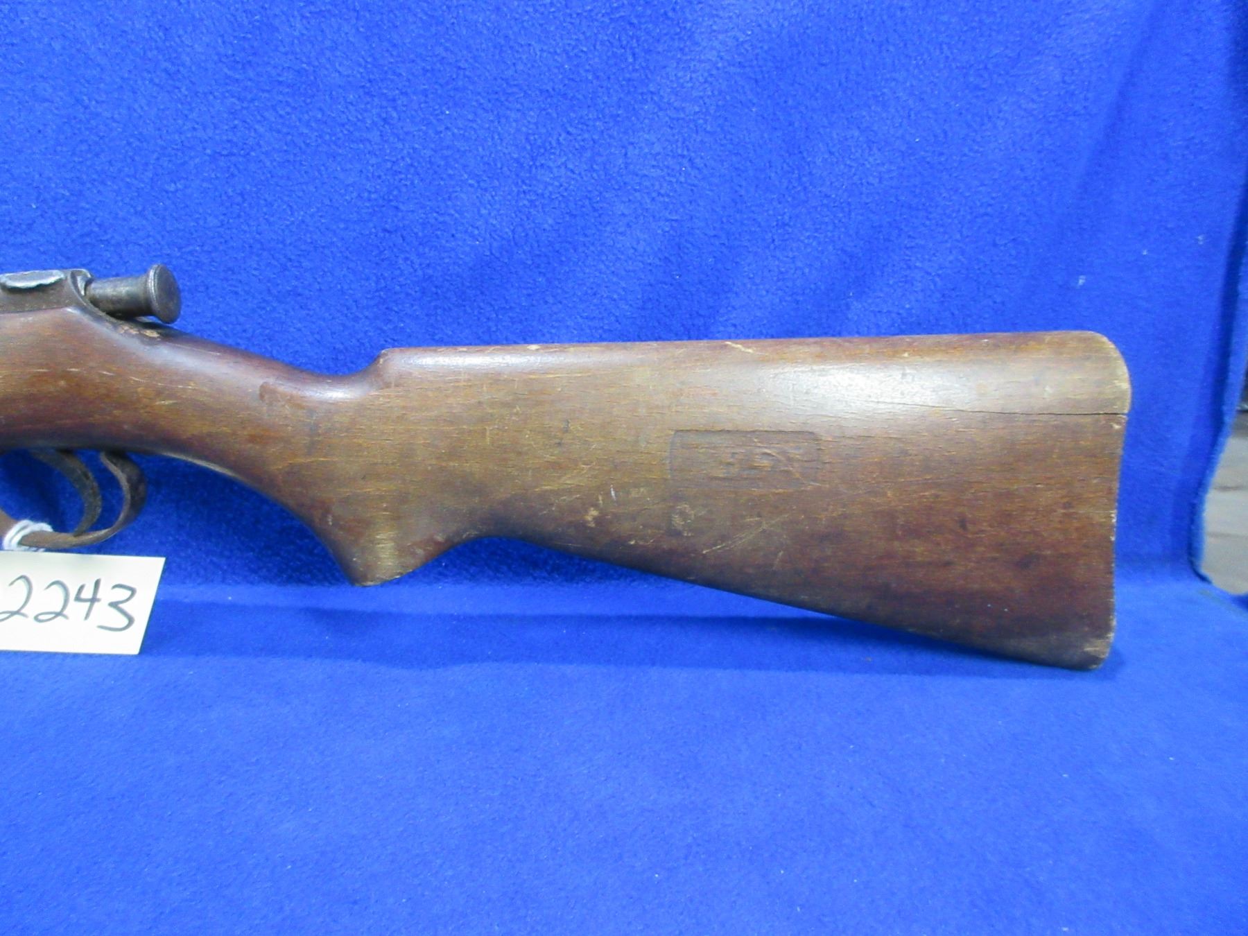 Non-Restricted - BSA Sportsman in 22 LR - This bolt action rifle with removable magazine (magazine missing) appears to be in working order. Barrel is 25", rifling is good to very good, bluing is pitted and rusty, back of the action has welds (not sure why), has both sights, stock has a couple of drying cracks on the butt, magazine missing. Ser #K19083
