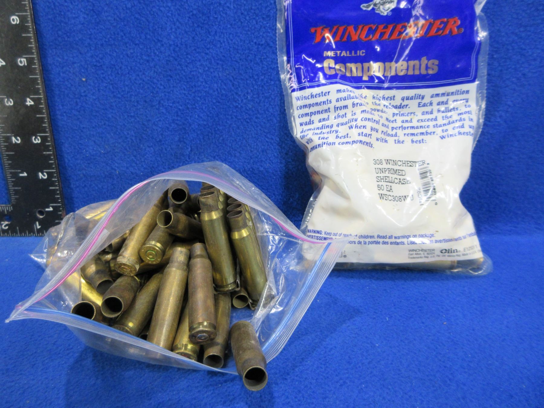 Brass Only - 308 Win. New and Used Unprimed - Bag of 54 (Used), Bag of 30 (New Winchester)