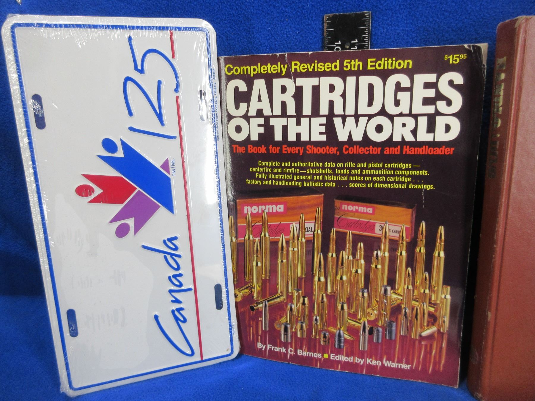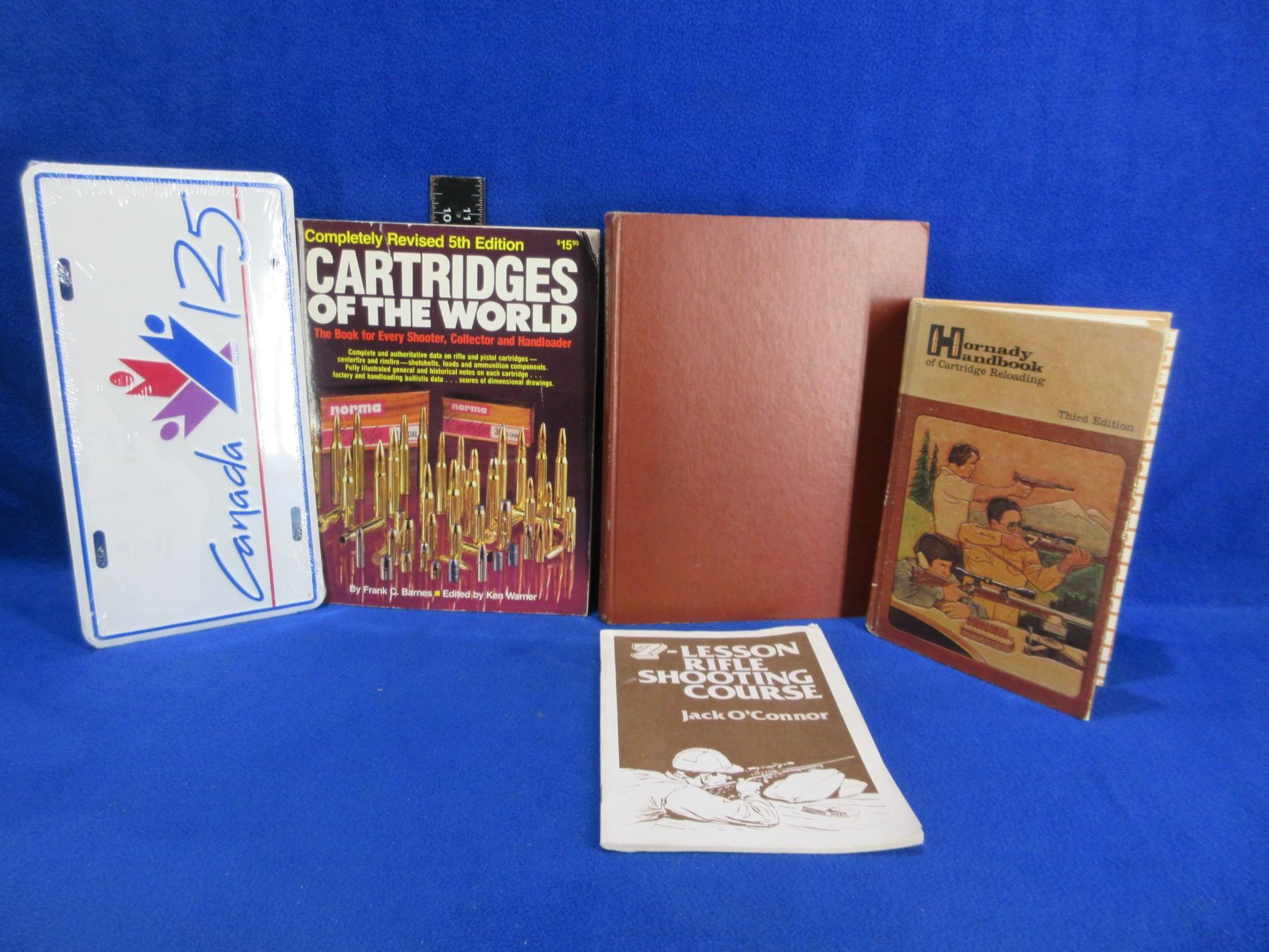 4 Books - Hornady Handbook of Cartridge Reloading 3rd Edition, Cartridges of the World 5th Edition, Handloading NRA, 7-Lesson Rifle Shooting Course and a Canada 125 License Plate