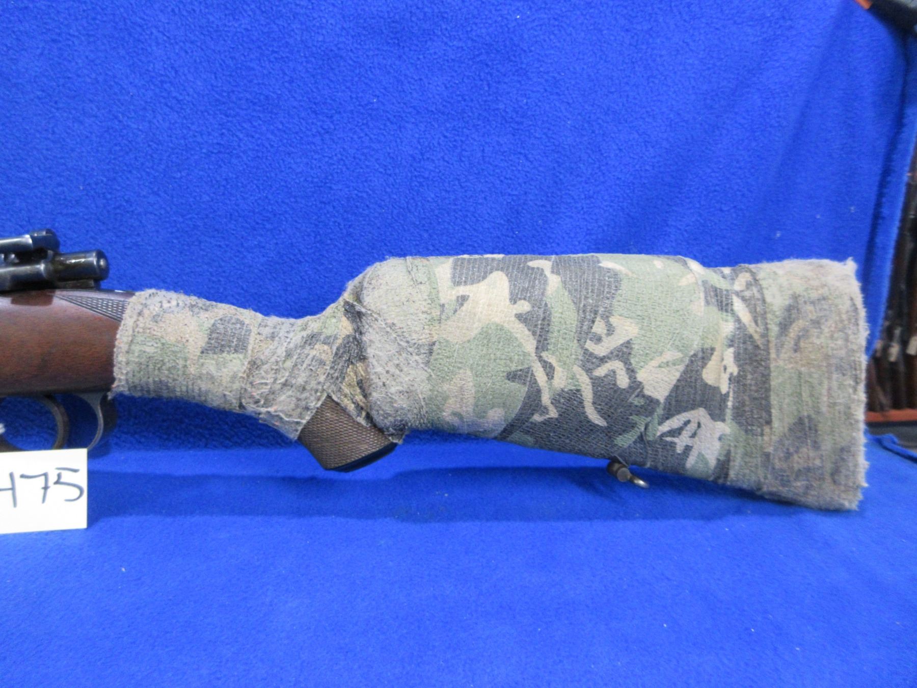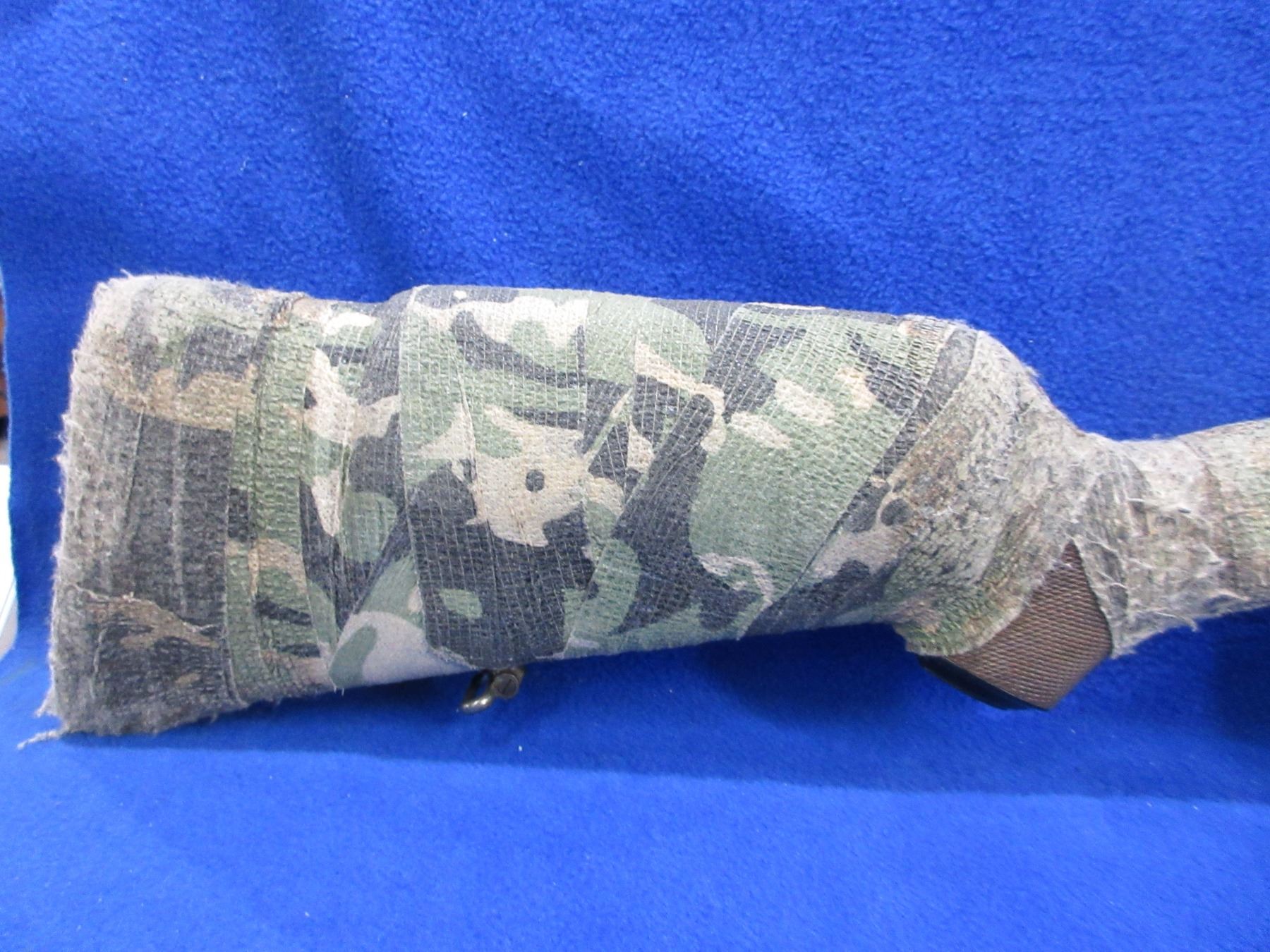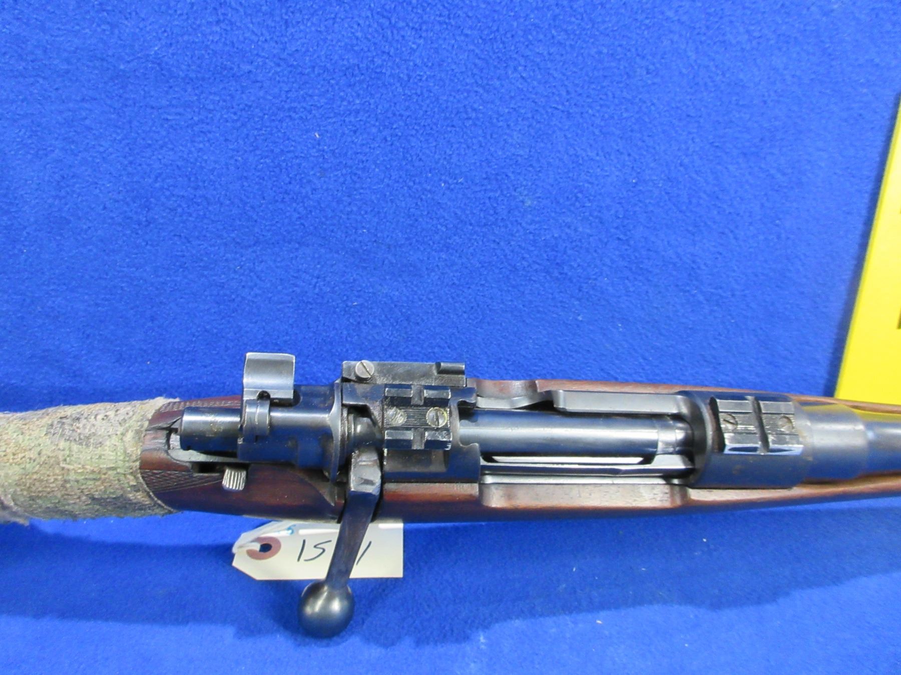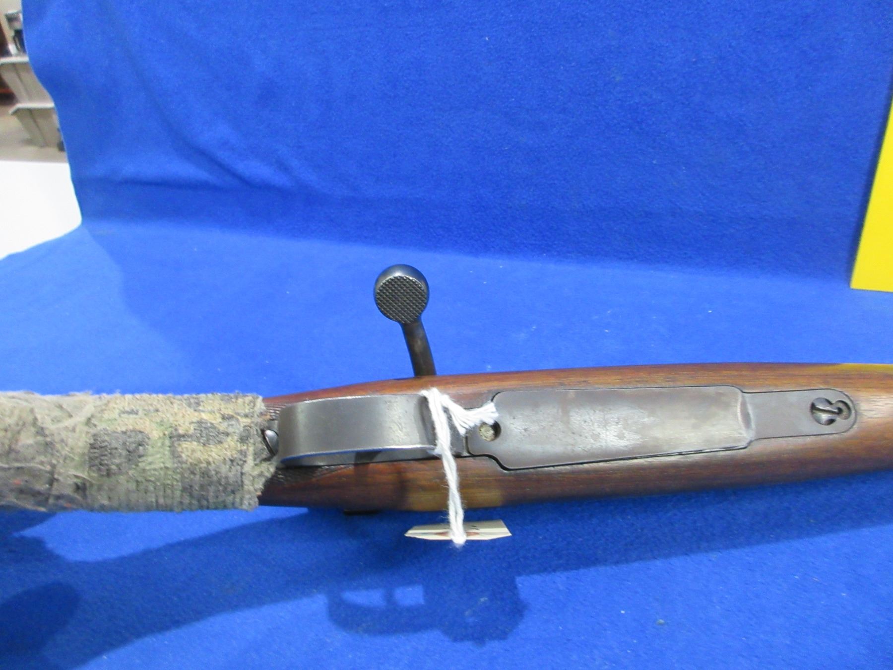 Non-Restricted - Husqvarna Model M98 in 93x57- This bolt action rifle with floorplate magazine appears to be in good to very good working order. Barrel is 21" and has been shortened but not finished correctly, rifling is good to very good, bluing is good, has rear sights and Weaver style bases, stock appears good but is wrapped in camo tape, comes with swivels. Ser #28259