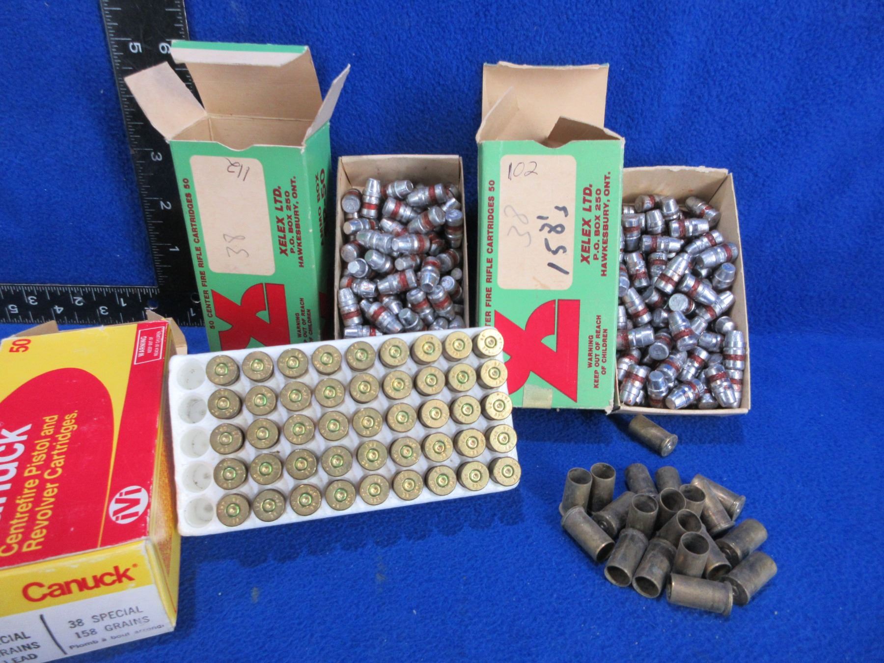 38 Spl/357 Mag FP Bullets (Box of 102, Box of 112) and 38 Spl/38S&W Unprimed Brass (Box of 45 - 38 Spl, Bag of 20 - 38 S&W)