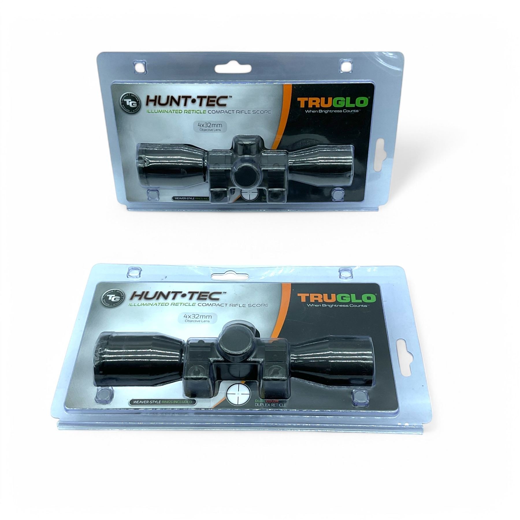 TruGlo Hunt-Tec Illuminated Dual Color Duplex Reticle Compact 4 x 32mm Rifle Scope X 2 Qty