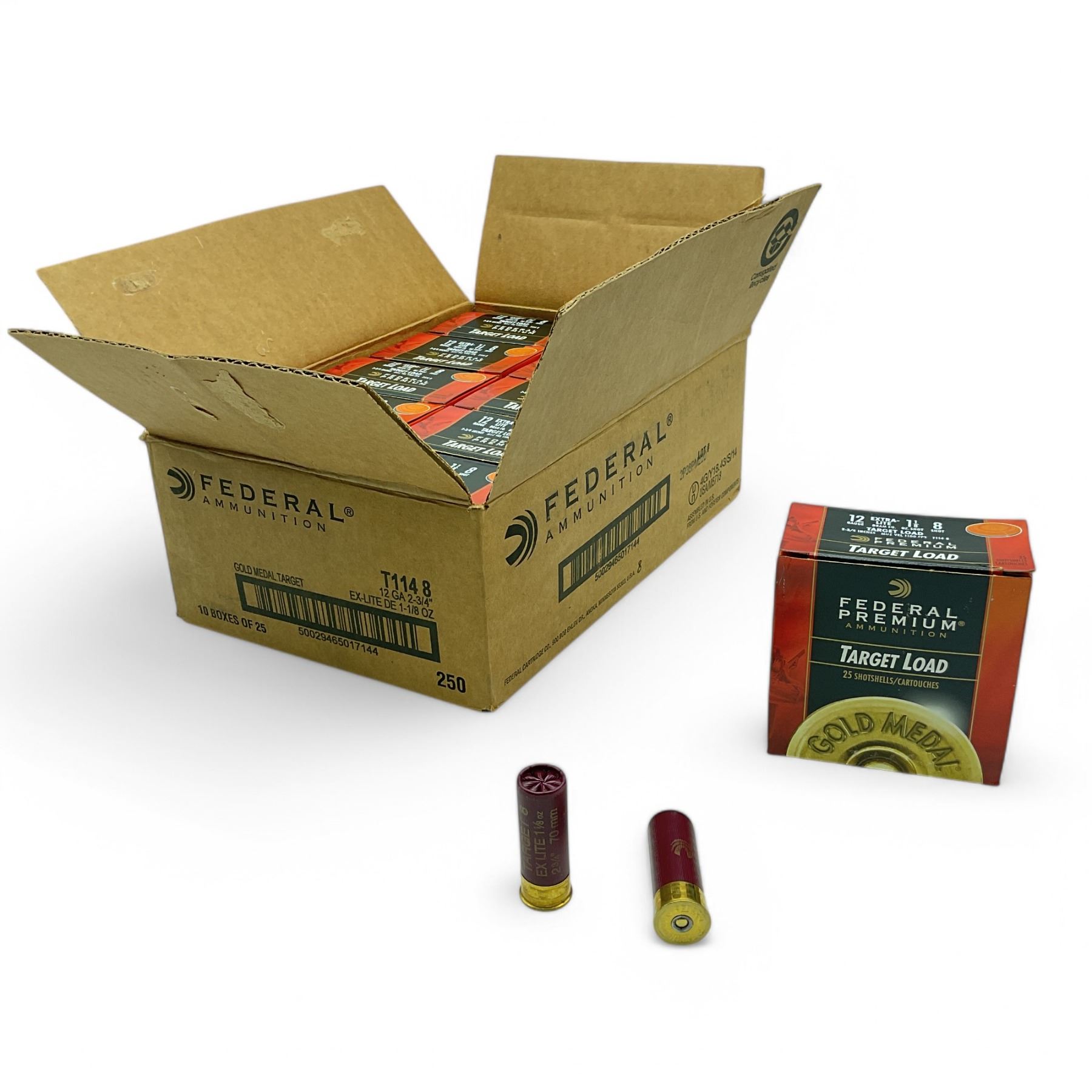 Lot 1929 Federal Gold Medal Target 12 Ga Extra Light 2 3/4" #8 Ammunition, 250 Round Case