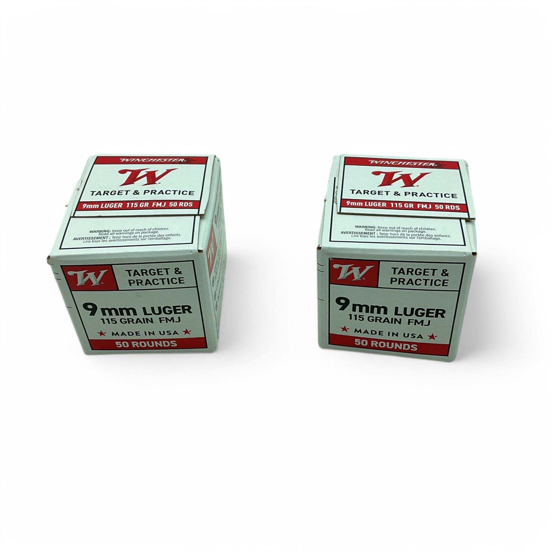 Lot 2001 Winchester Target and Practice 9 mm 115 Grain FMJ Ammunition, 100 Rounds
