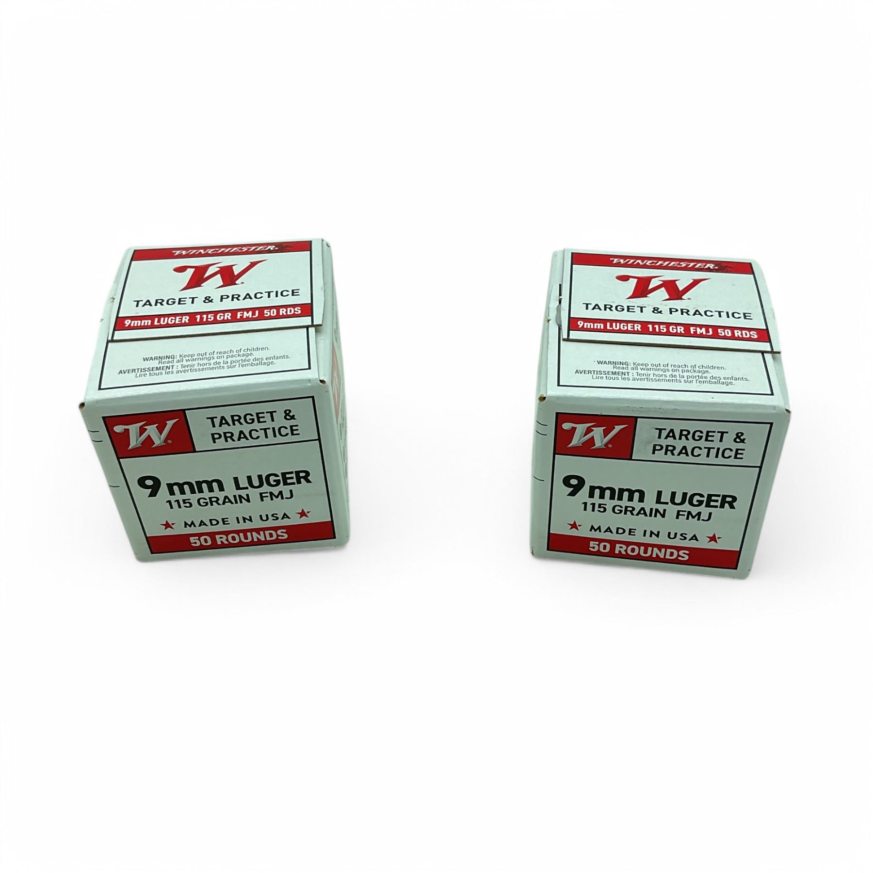 Lot 2015 Winchester Target and Practice 9 mm 115 Grain FMJ Ammunition, 100 Rounds
