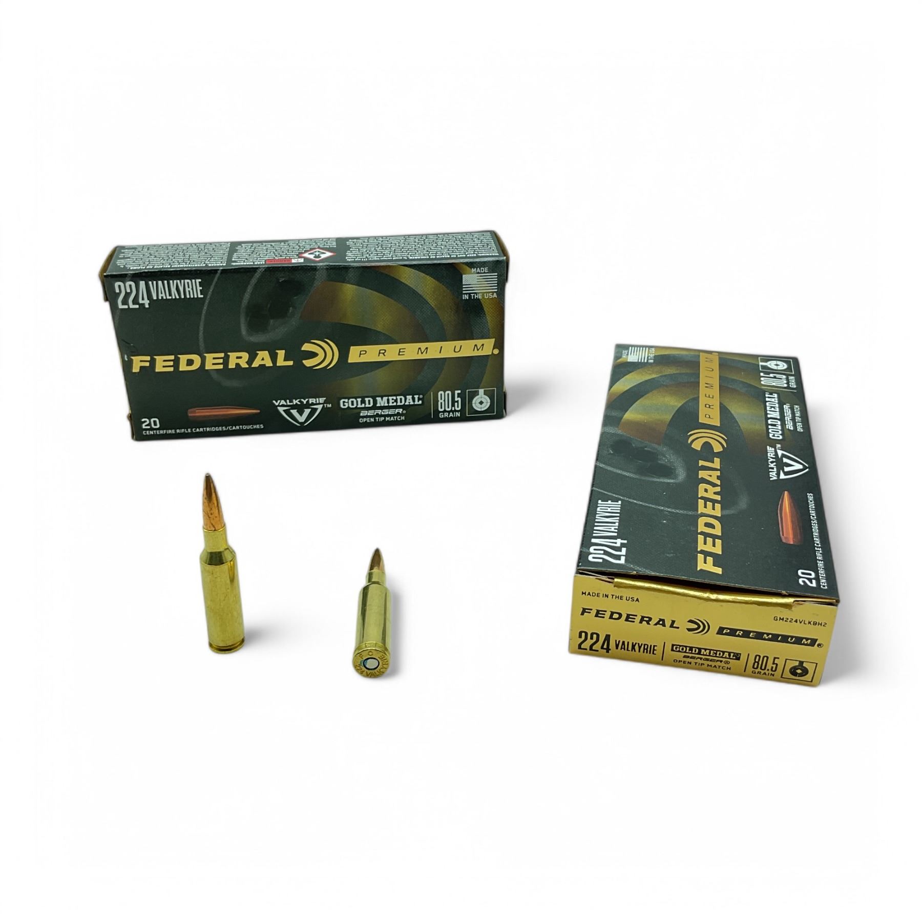 Lot 2022 Federal Premium Gold Medal Berger 224 Valkyrie 80.5 Grain OTM Ammunition, 40 Rounds