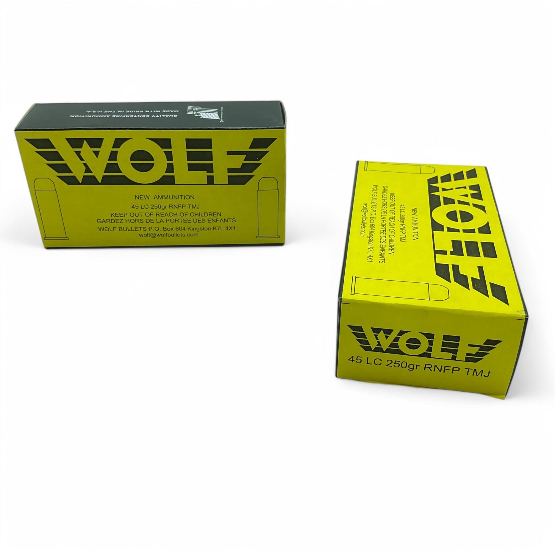 Lot 2041 Wolf 45 LC 250 Grain RNFP TMJ Ammunition, 100 Rounds