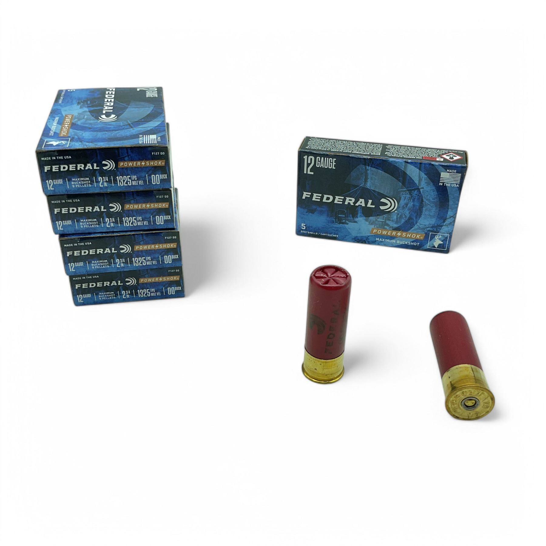 Lot 2048 Federal Power Shok 12 Ga 2 3/4" 00 Buck Ammunition, 25 Rounds
