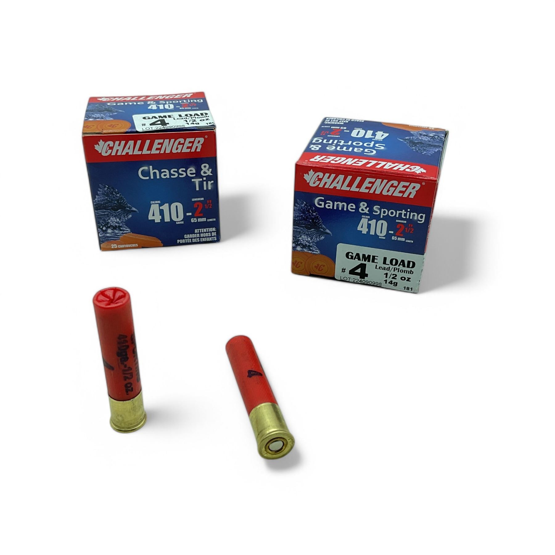 Lot 2065 Challenger Game and Sporting 410 Bore 2 1/2" Lead #4 Ammunition, 50 Rounds
