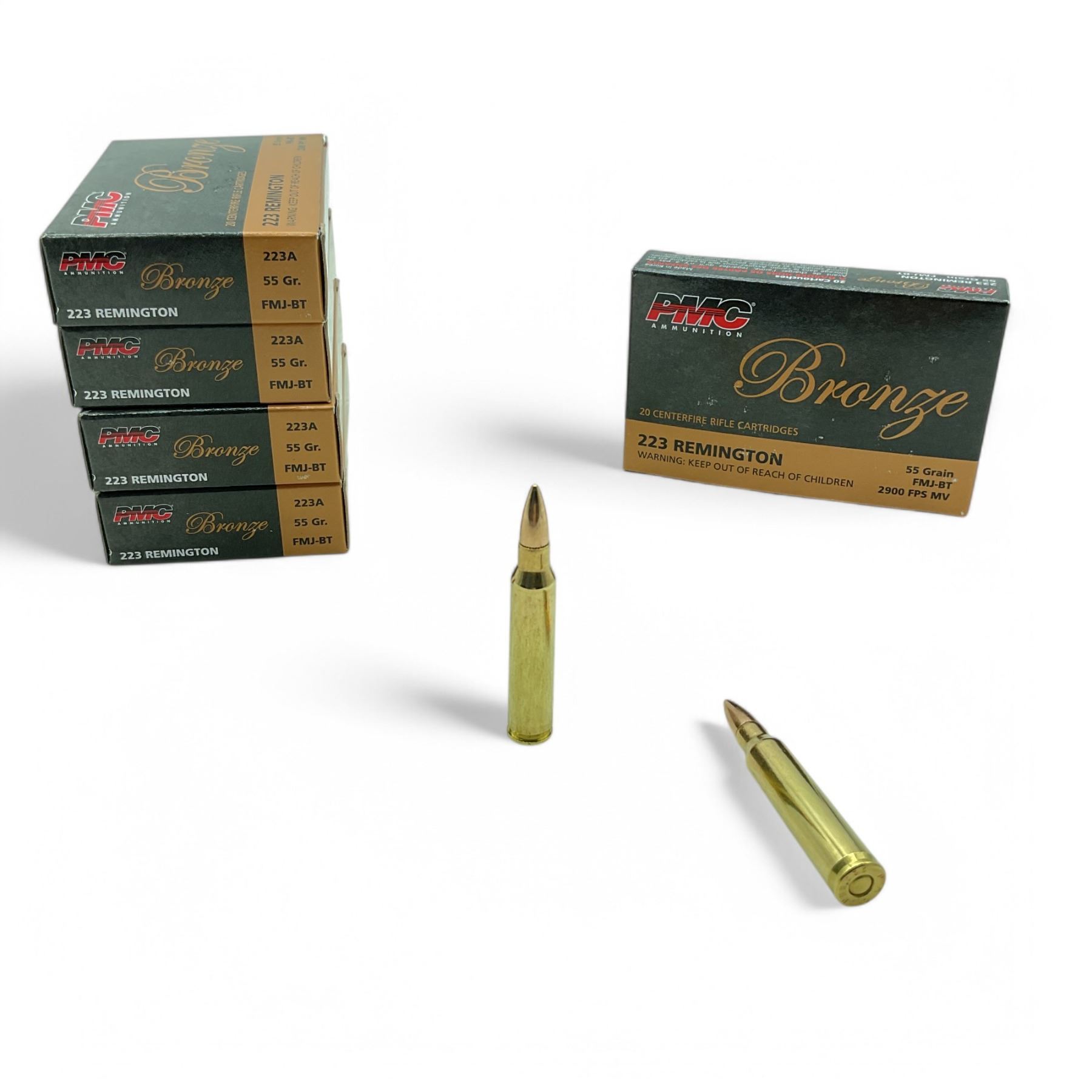 PMC Bronze 223 Rem 55 Grain FMJ-BT Ammunition, 100 Rounds