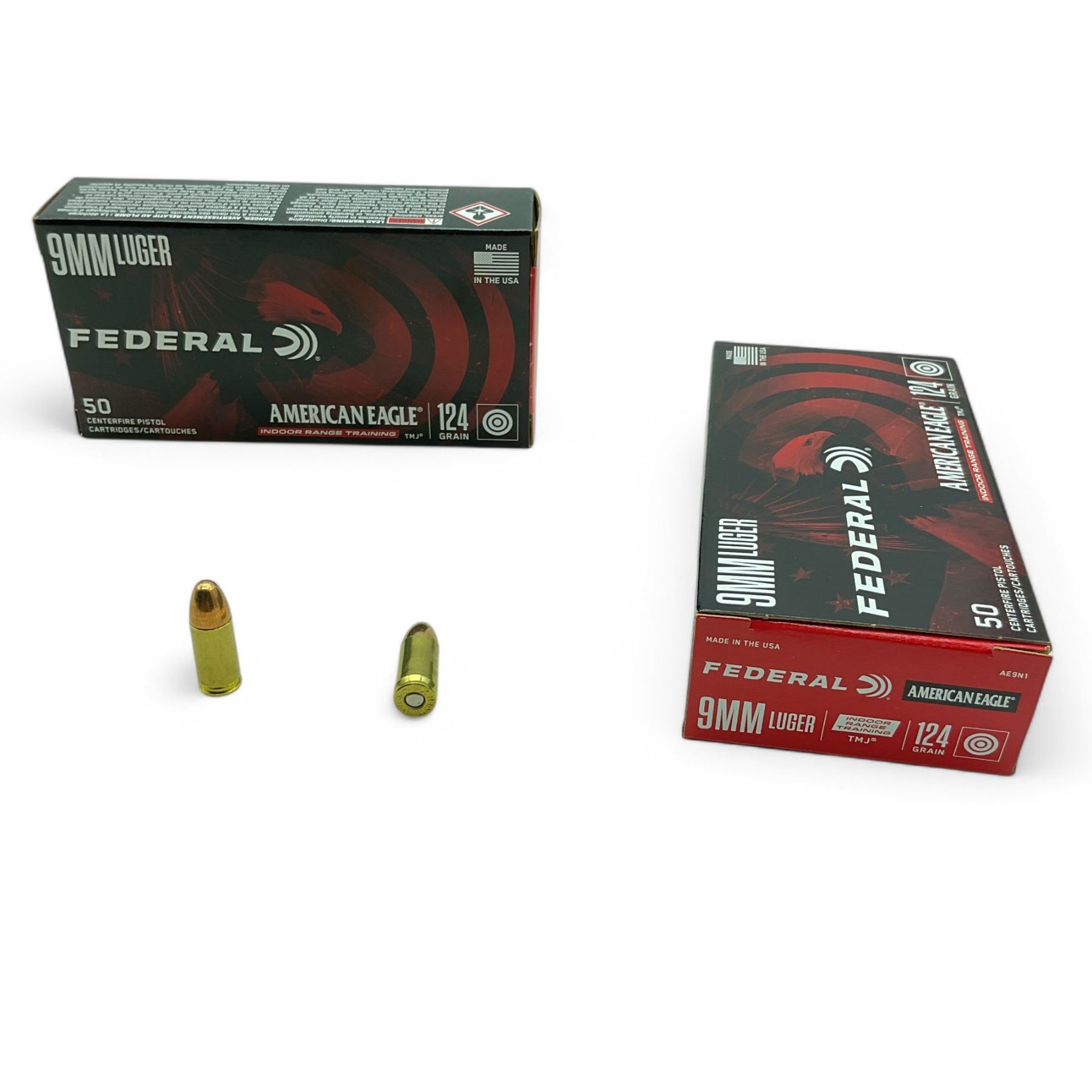 Lot 2072 Federal American Eagle Indoor Range Training 9 mm 124 Grain TMJ Ammunition, 100 Rounds