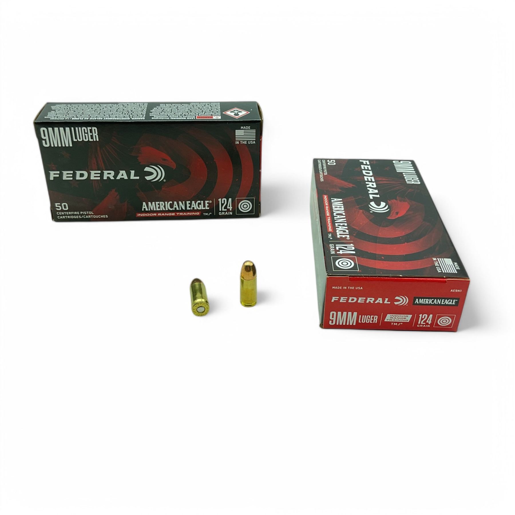 Federal American Eagle Indoor Range Training 9 mm 124 Grain TMJ Ammunition, 100 Rounds