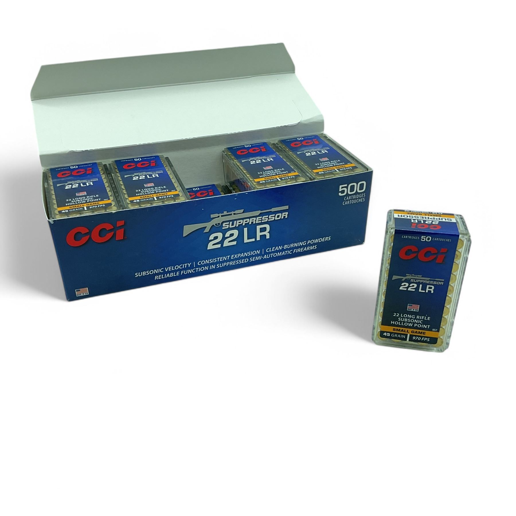 CCI Small Game Suppressor 22 LR Subsonic 45 Grain Ammunition, 500 Rounds