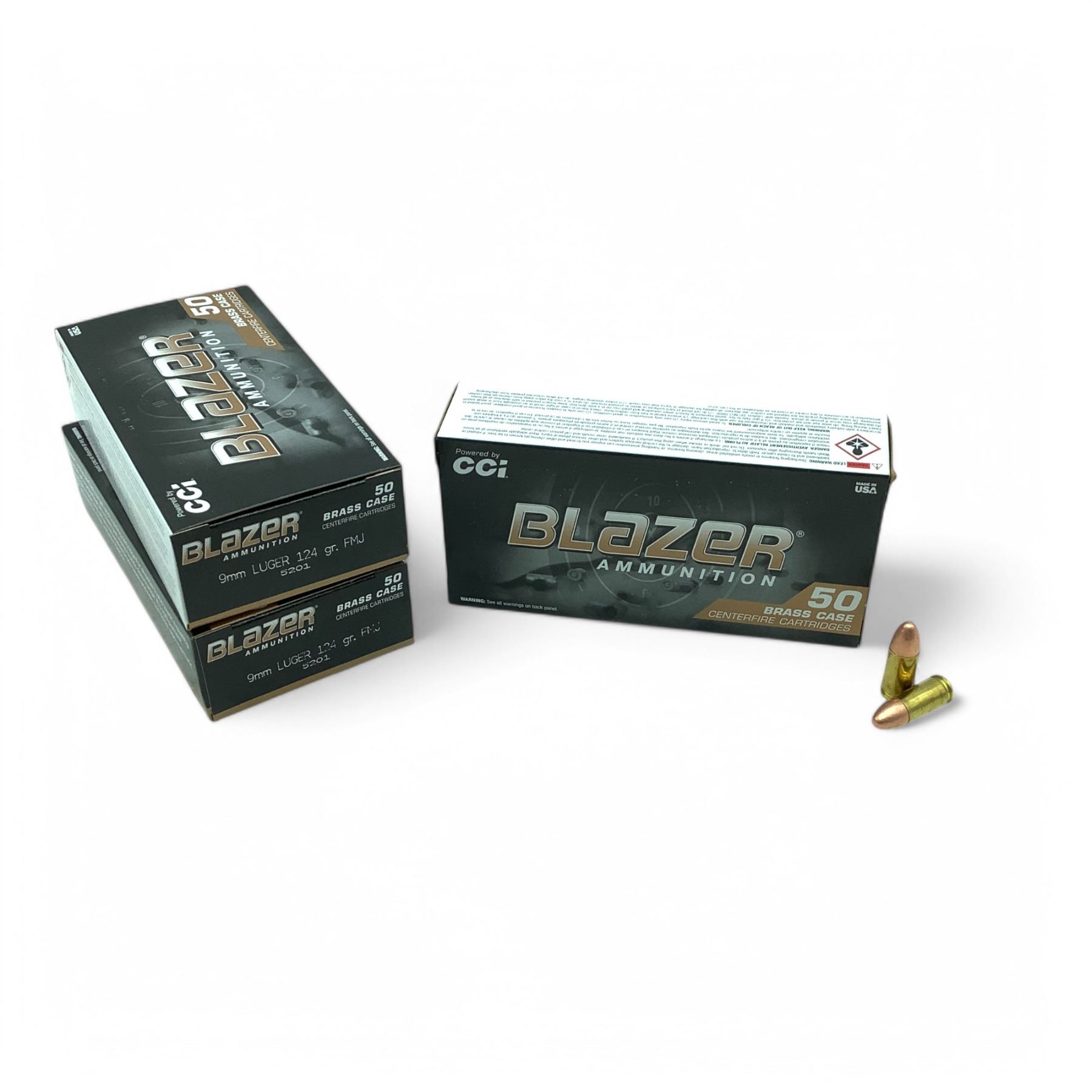CCI Blazer Brass 9 mm 124 Grain FMJ Ammunition, 150 Rounds