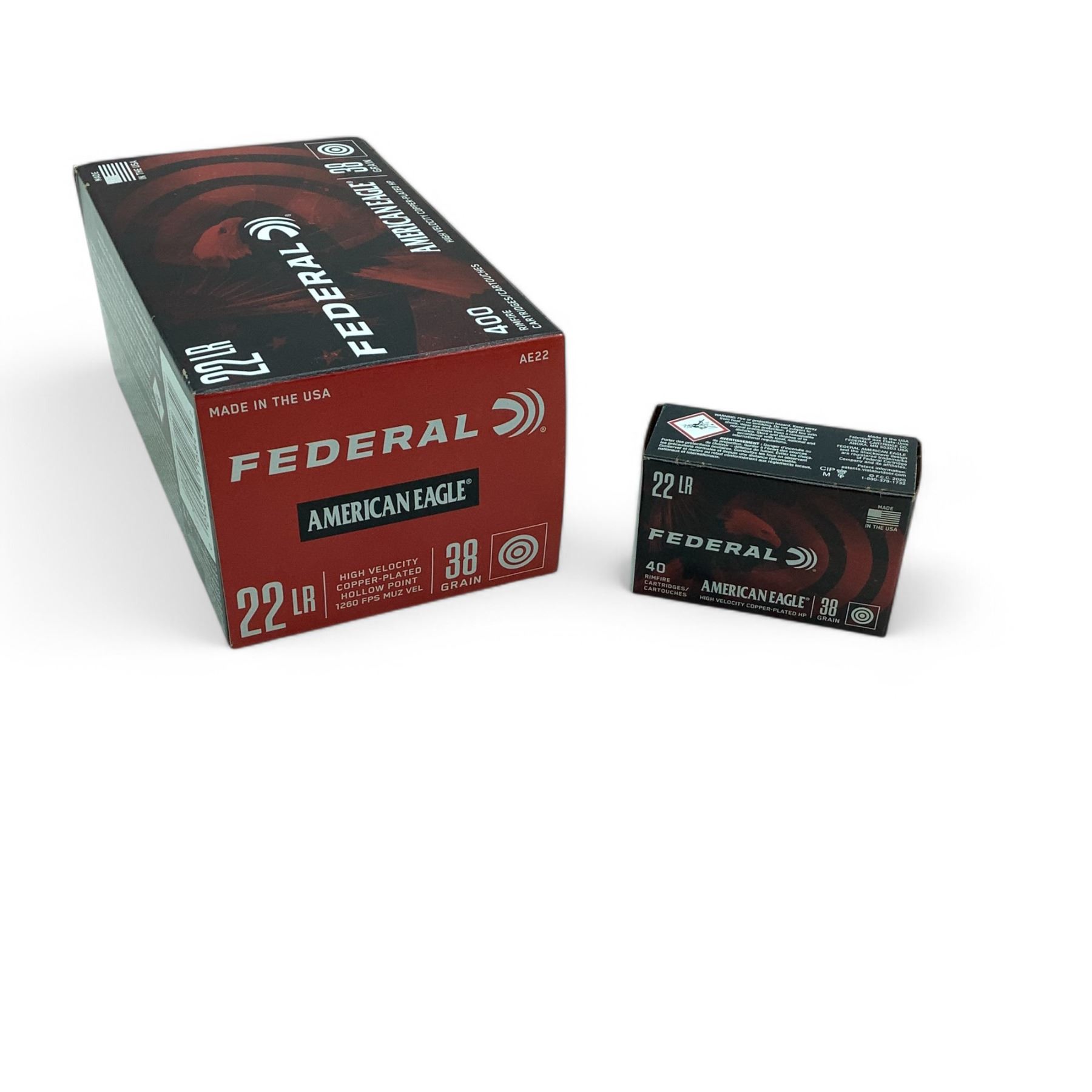 Federal American Eagle HV 22 LR 38 Grain CPHP Ammunition, 400 Rounds