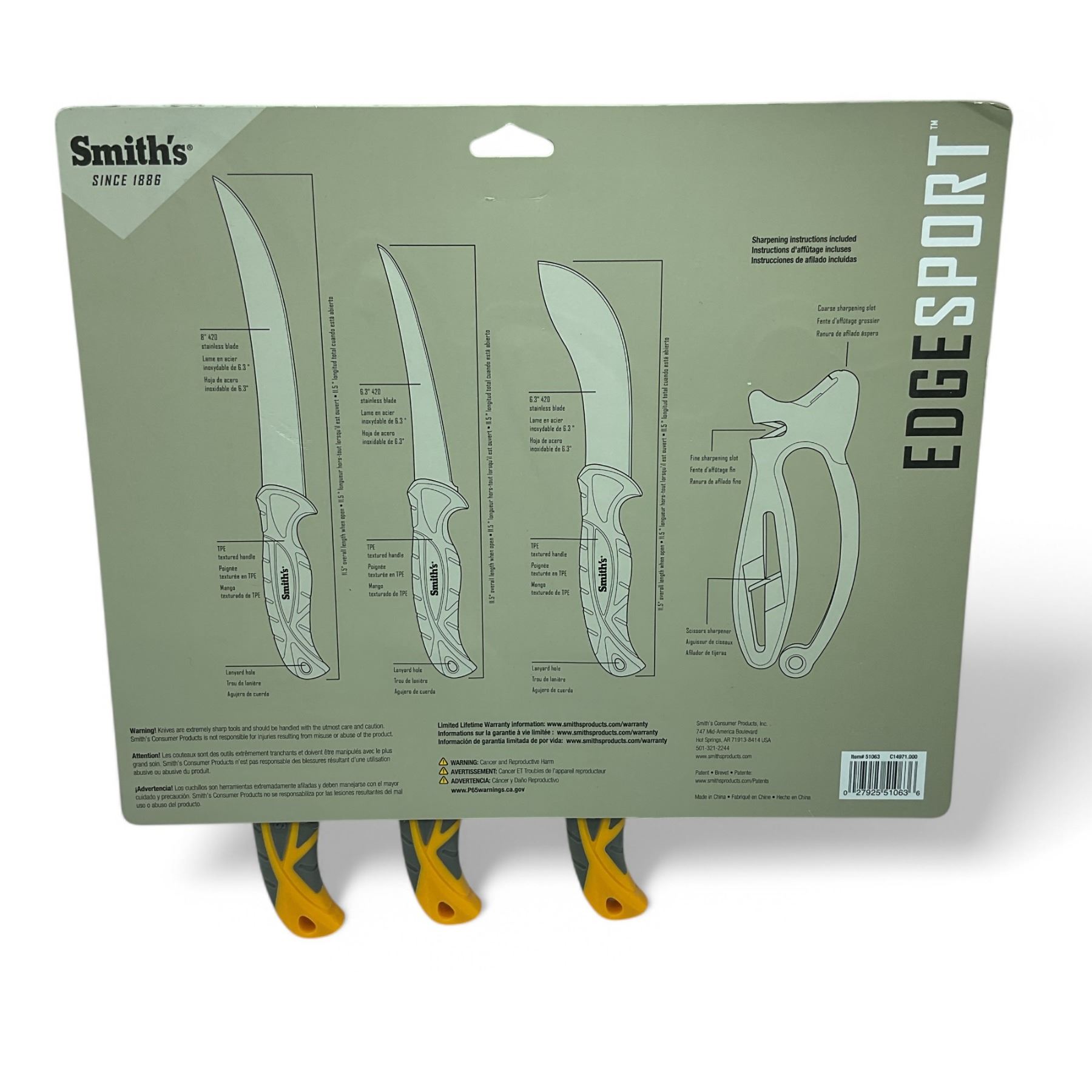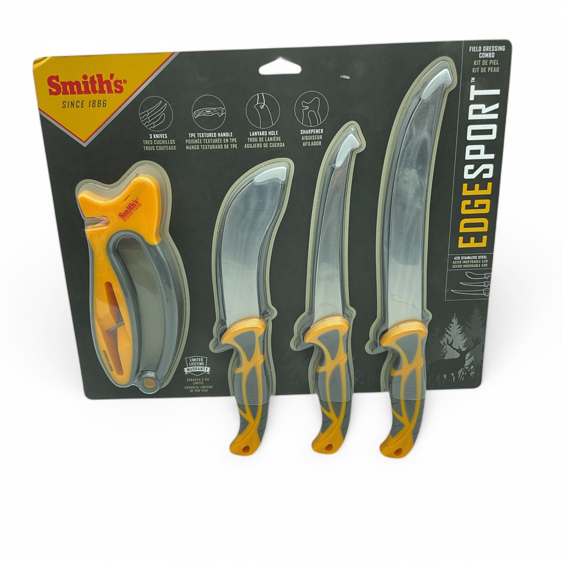 Smith's Edge Sport Field Dressing Combo Knife and Sharpener Set, New