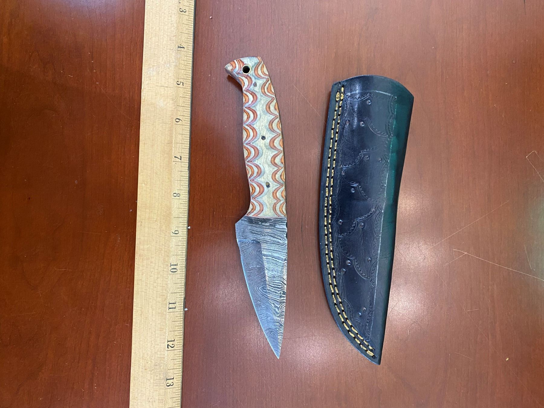 Lot 222 Hand Forged Damascus Knife with Sheath