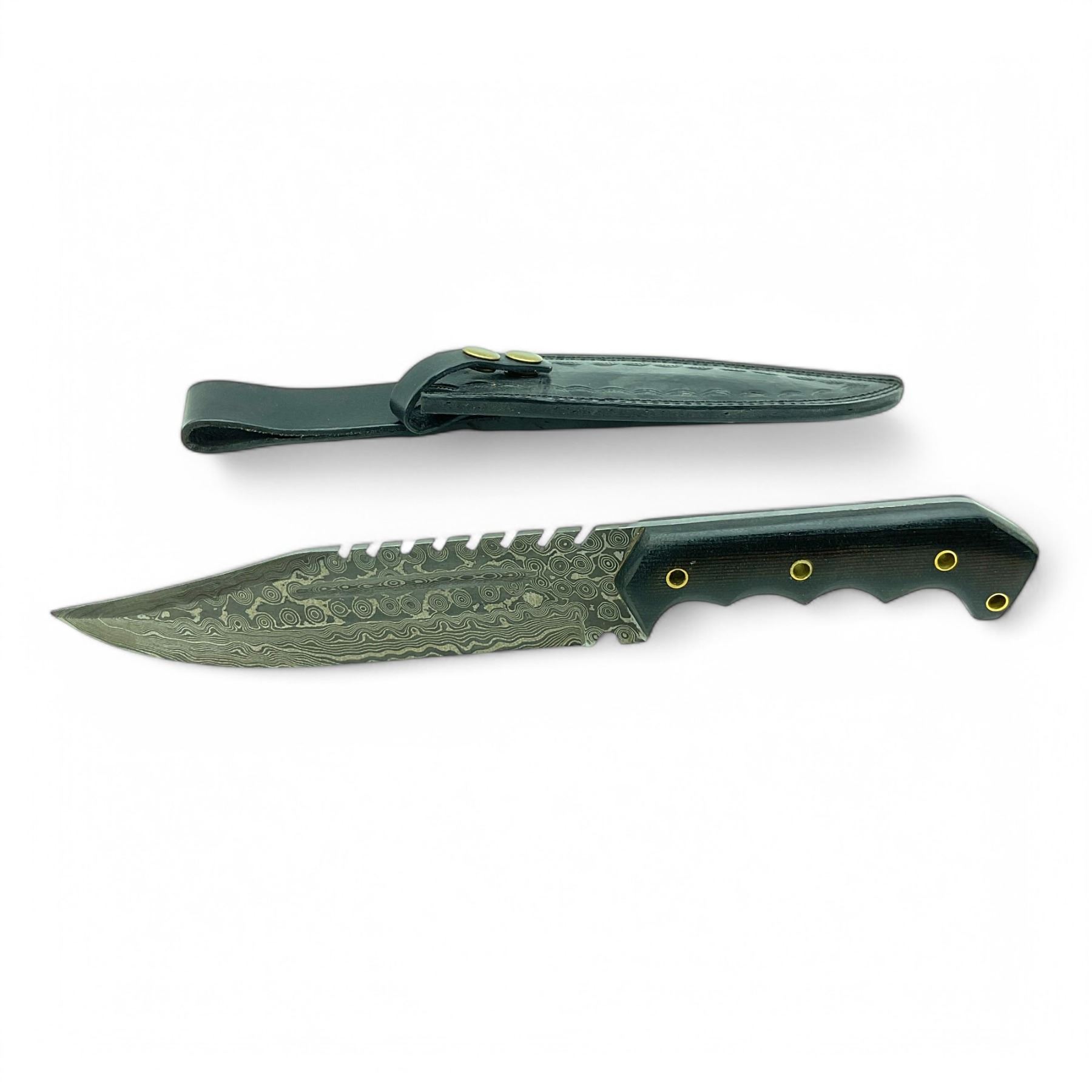Fixed 7" Damascus Blade Knife in Leather Belt Sheath