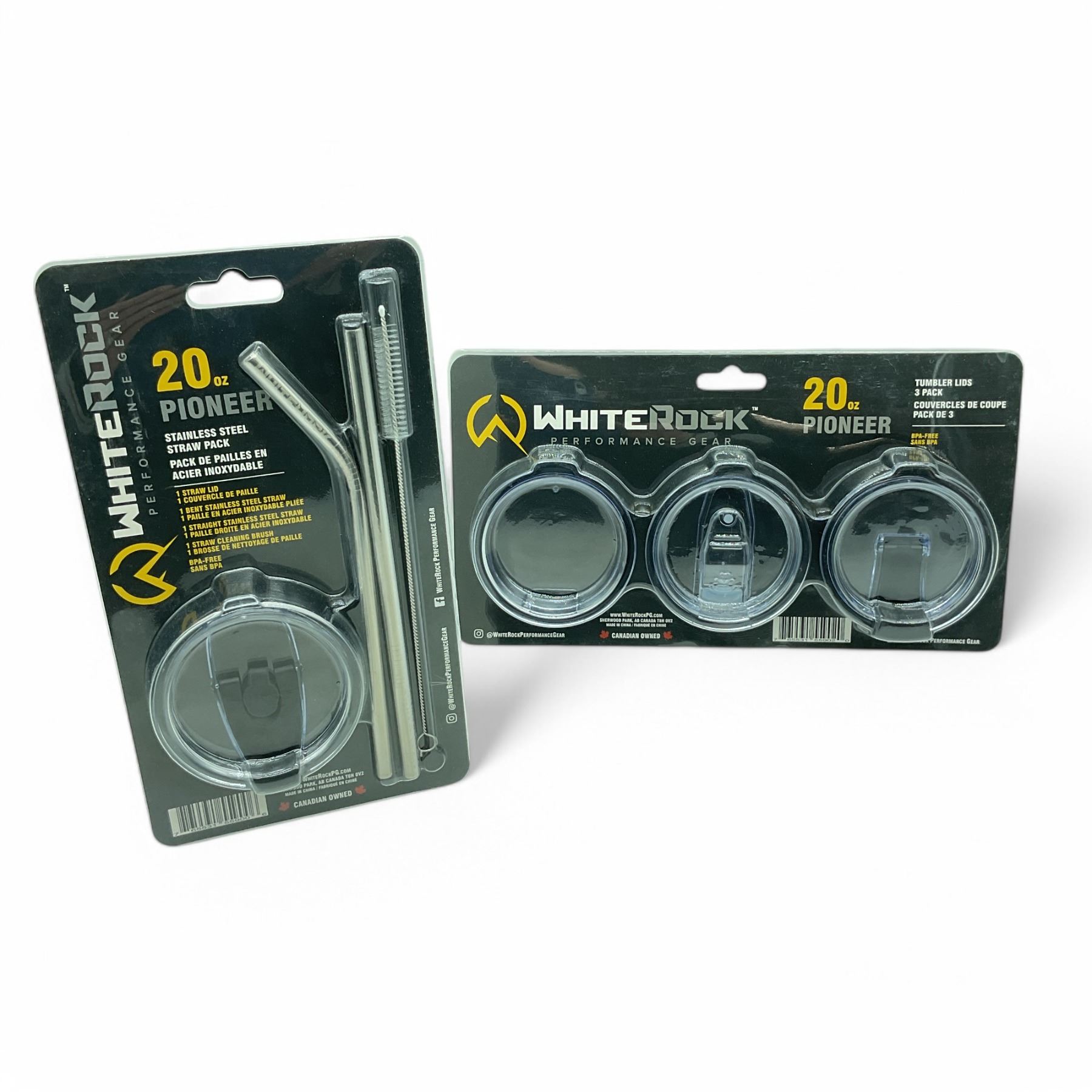 Whiterock 20 Oz Pioneer Stainless Straw Pack and Tumbler Lids, New