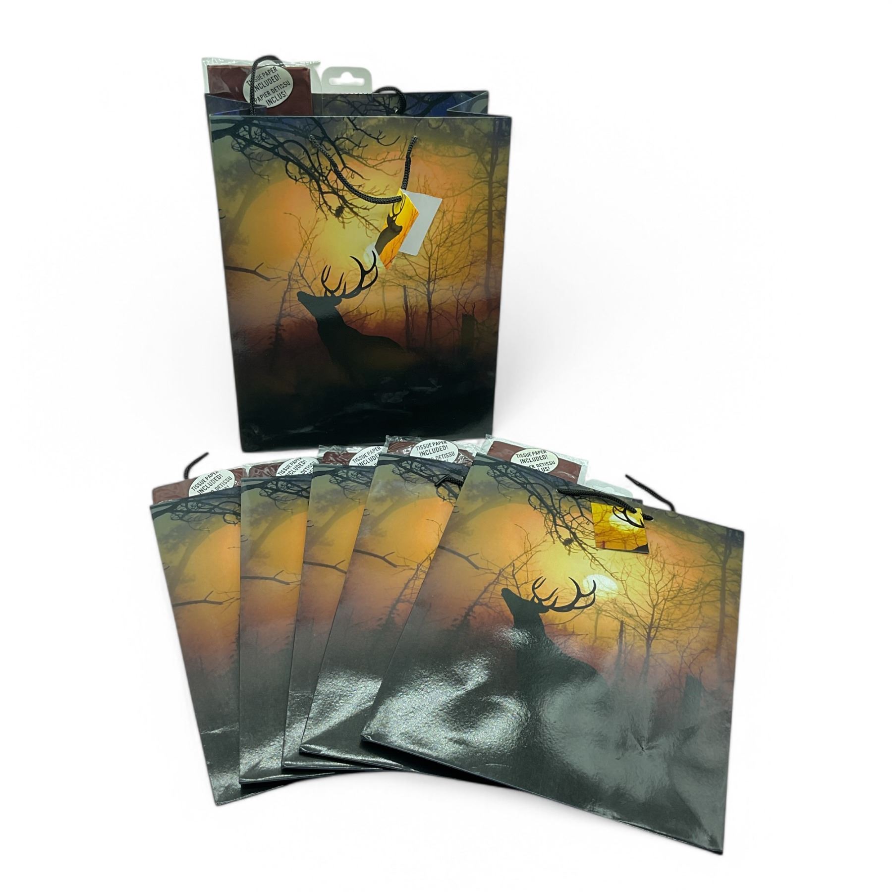 River's Edge Deer Silhouette Gift Bags with Tissue Paper, 13" X 10" 6 Qty