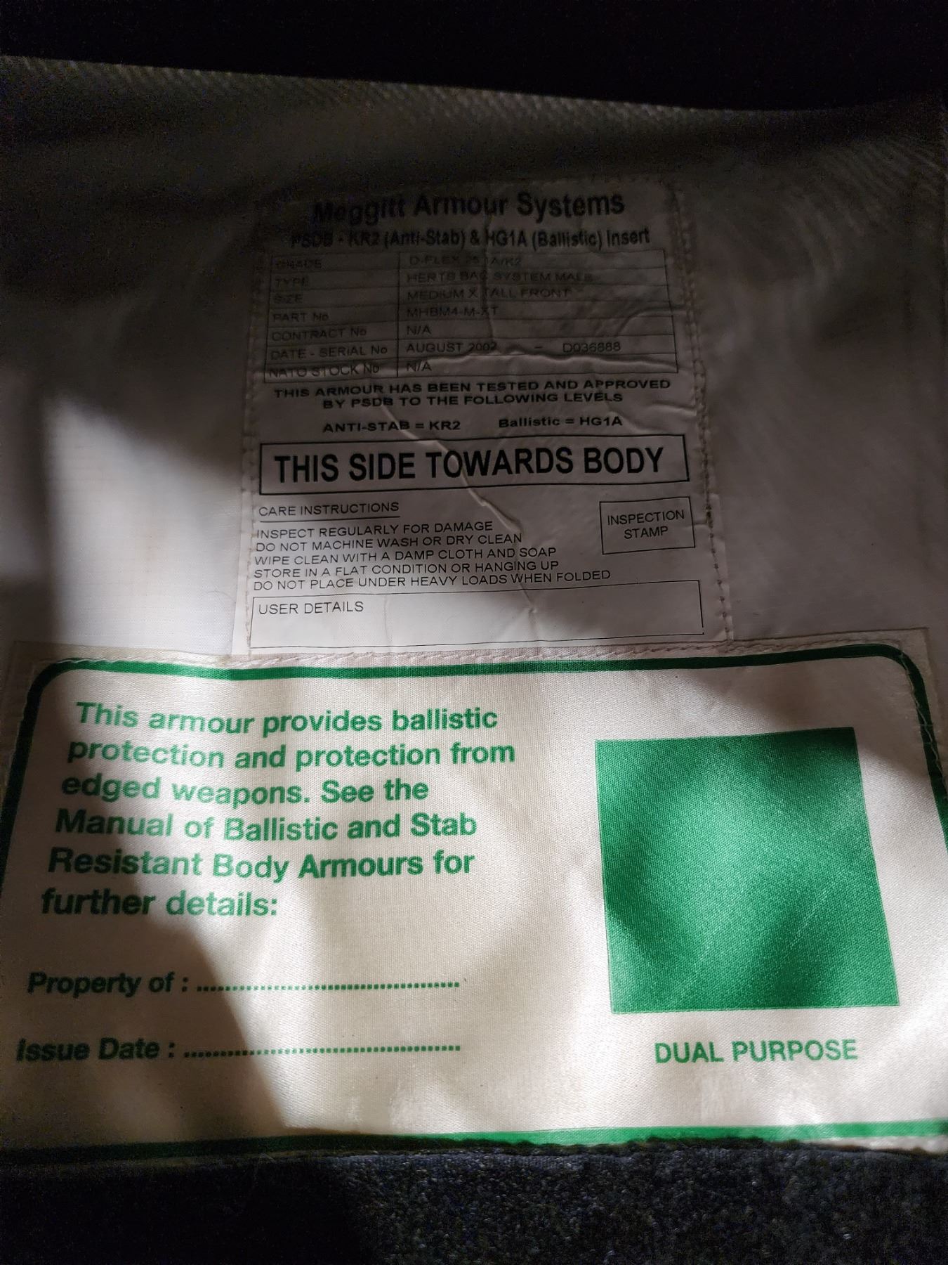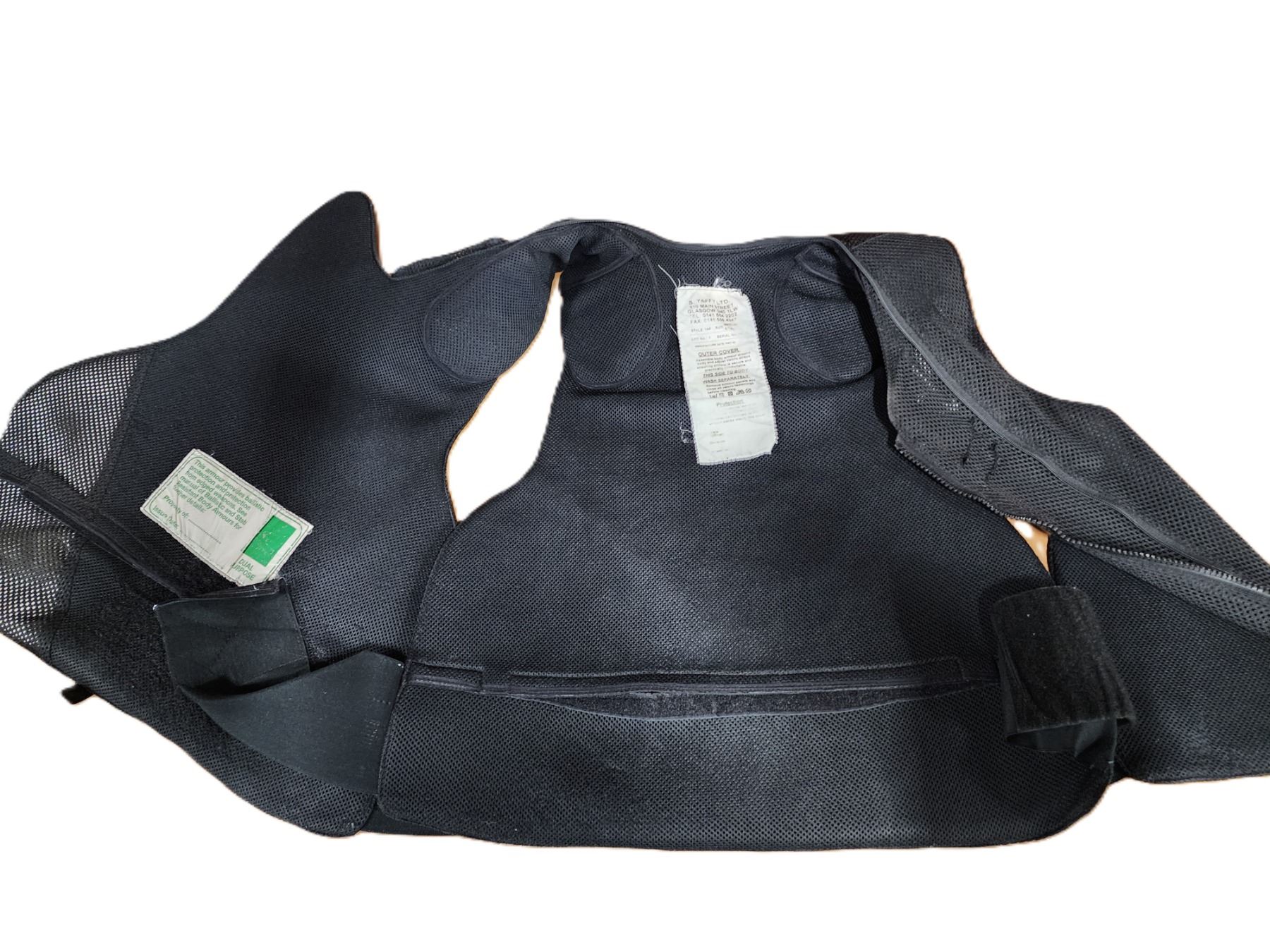 These Aegis Overt Body Armour Vests are ex-police units and are in very good used Grade 1 condition. They are designed to be worn over uniforms and clothing and include front and back soft armoured plates to absorb and disperse the impact of fired projectiles to the torso. This ballistic vest features adjustable waist and shoulder straps, 1 front pocket with a flap closure, 2 epaulettes and a front zip with a storm flap. The armoured plates are removable for laundering requirements. Originally used as protection against hand guns, knives and spiked instruments such as needles and syringes.