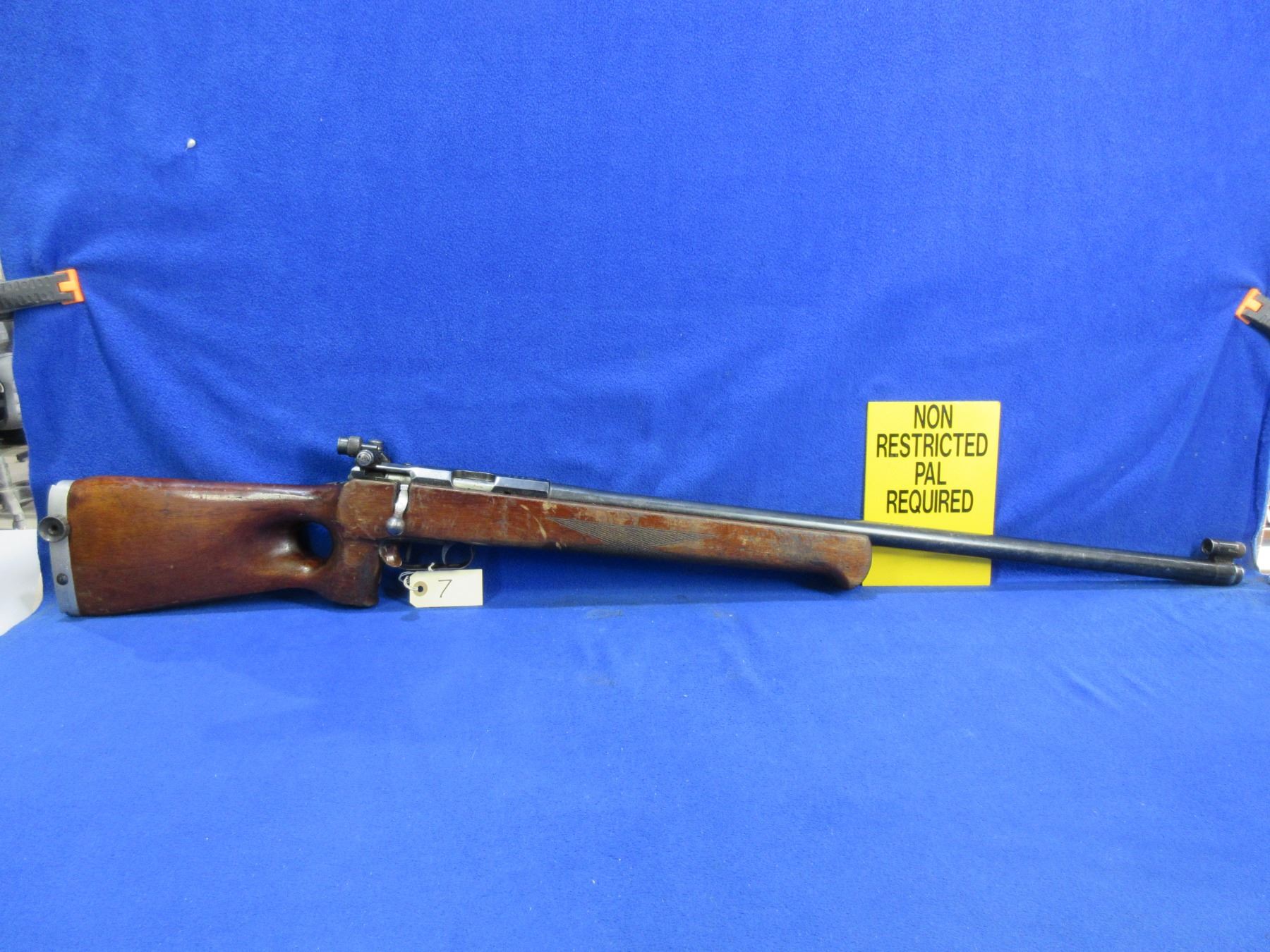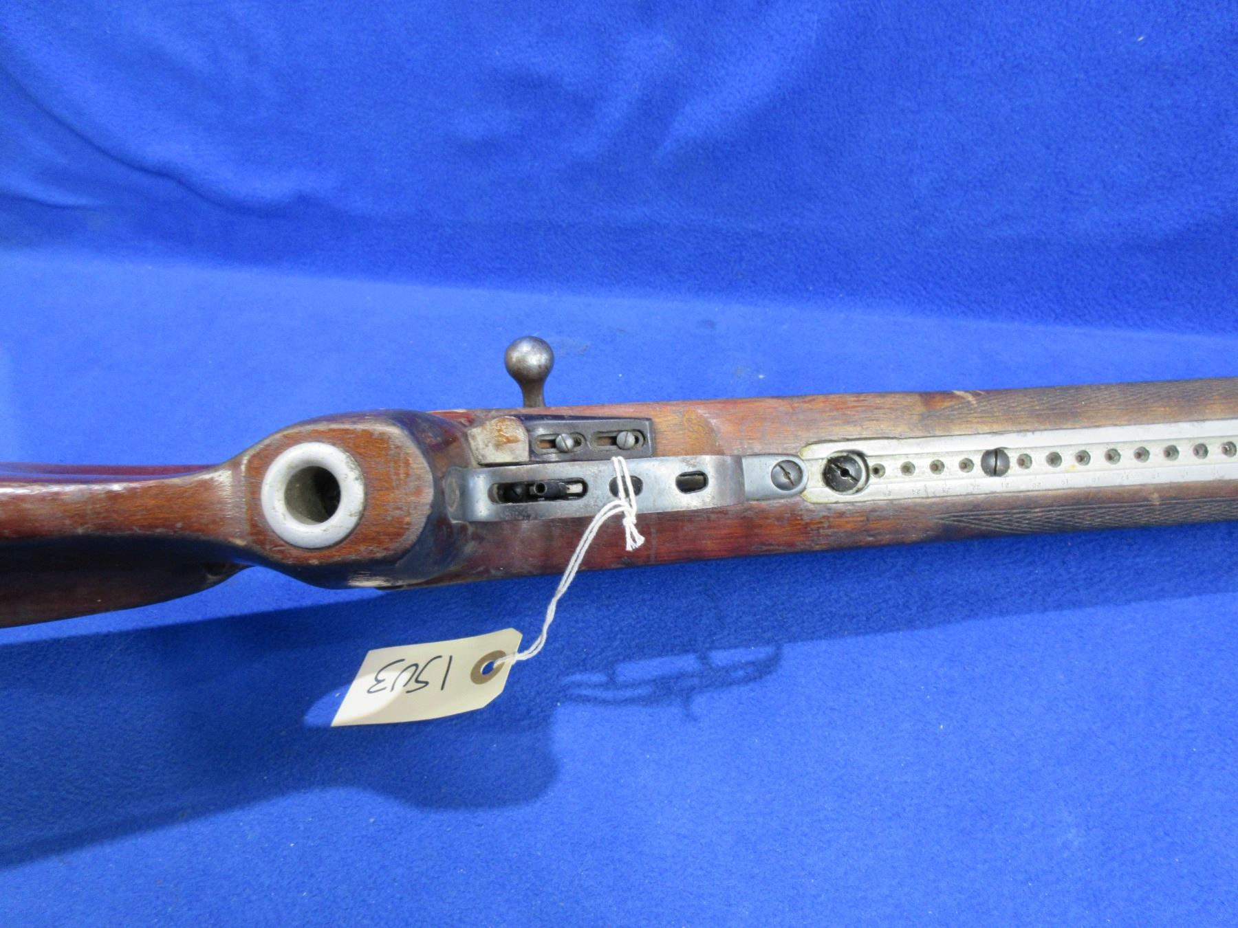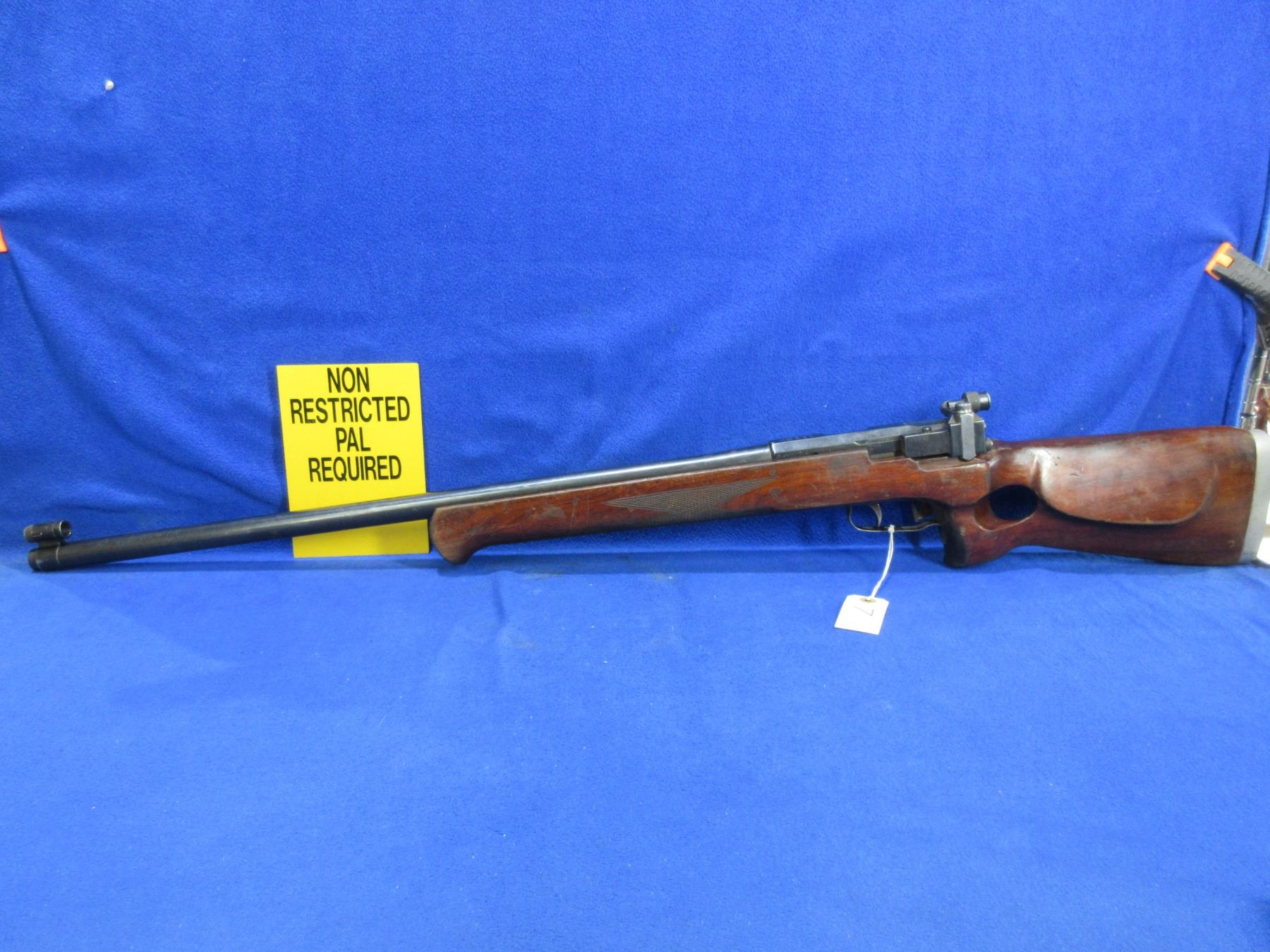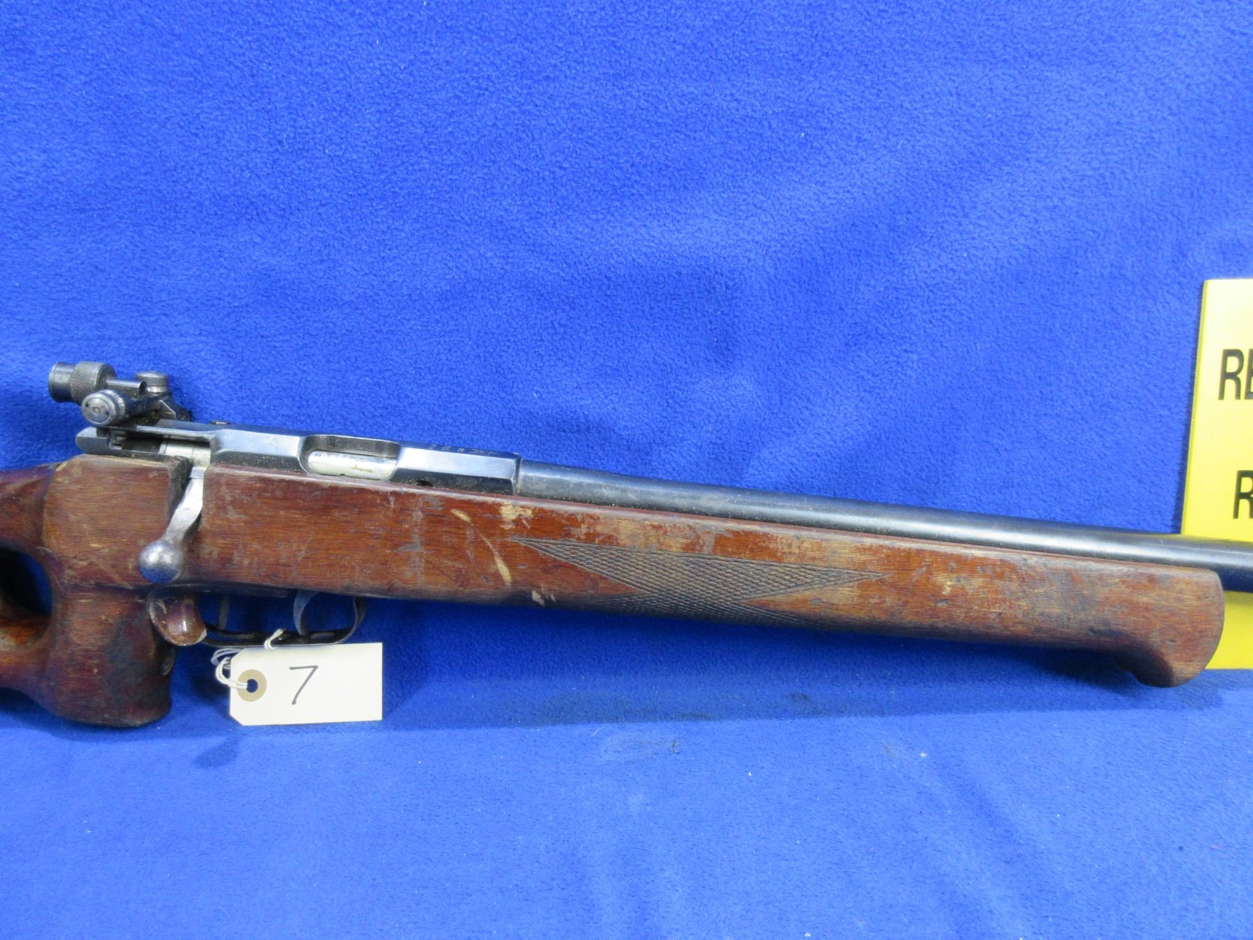 Non-Restricted - Russian TOZ Target Model MU-12 in 22 LR - Made in 1959, this very rare bolt action single shot target rifle appears to be in good to very good working order. Barrel is 29 1/2", rifling is good to very good, bluing is good with wear patches, has both peep sights, stock is good with many usage marks, adjustable recoil pad - missing pad, has double set triggers, comes with rail for palm rest. Ser #NT-395