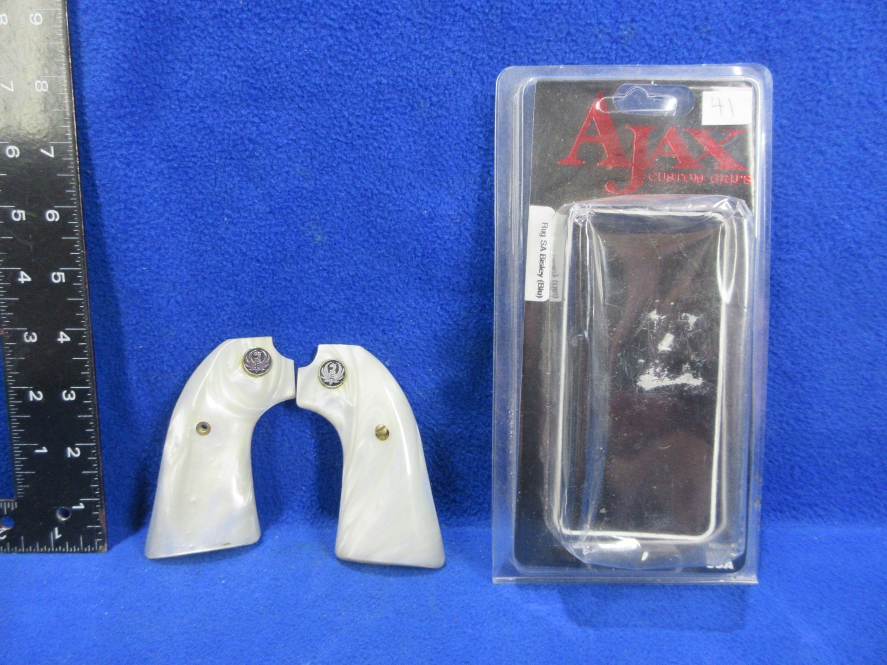Lot 41 Ajax Custom Grips - Ruger SA Bisley (Blu) - White Pearlite