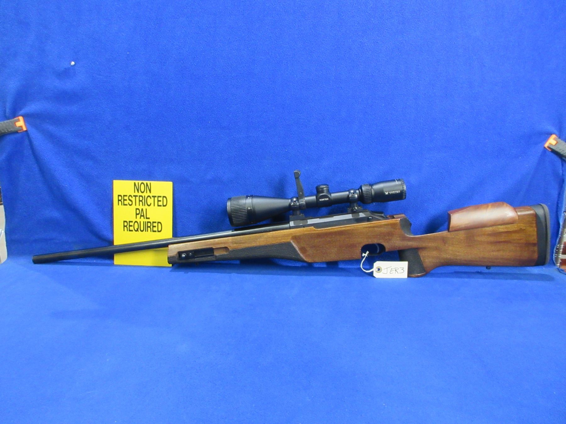 Non-Restricted - Tikka Model M595 in 308 Win - This bolt action target rifle with removable magazine is in very nice condition and appears to be in very good working order. Heavy barrel is 23 1/2", rifling is very good, bluing is good to very good, has no sights but has Vortex Crossfire II 4-12x50 scope - Dead Hold BDC reticle - appears clear, target rifle stock with adjustable comb is good to very good with usage marks, rubber butt plate good, comes with swivel studs. Ser #939737