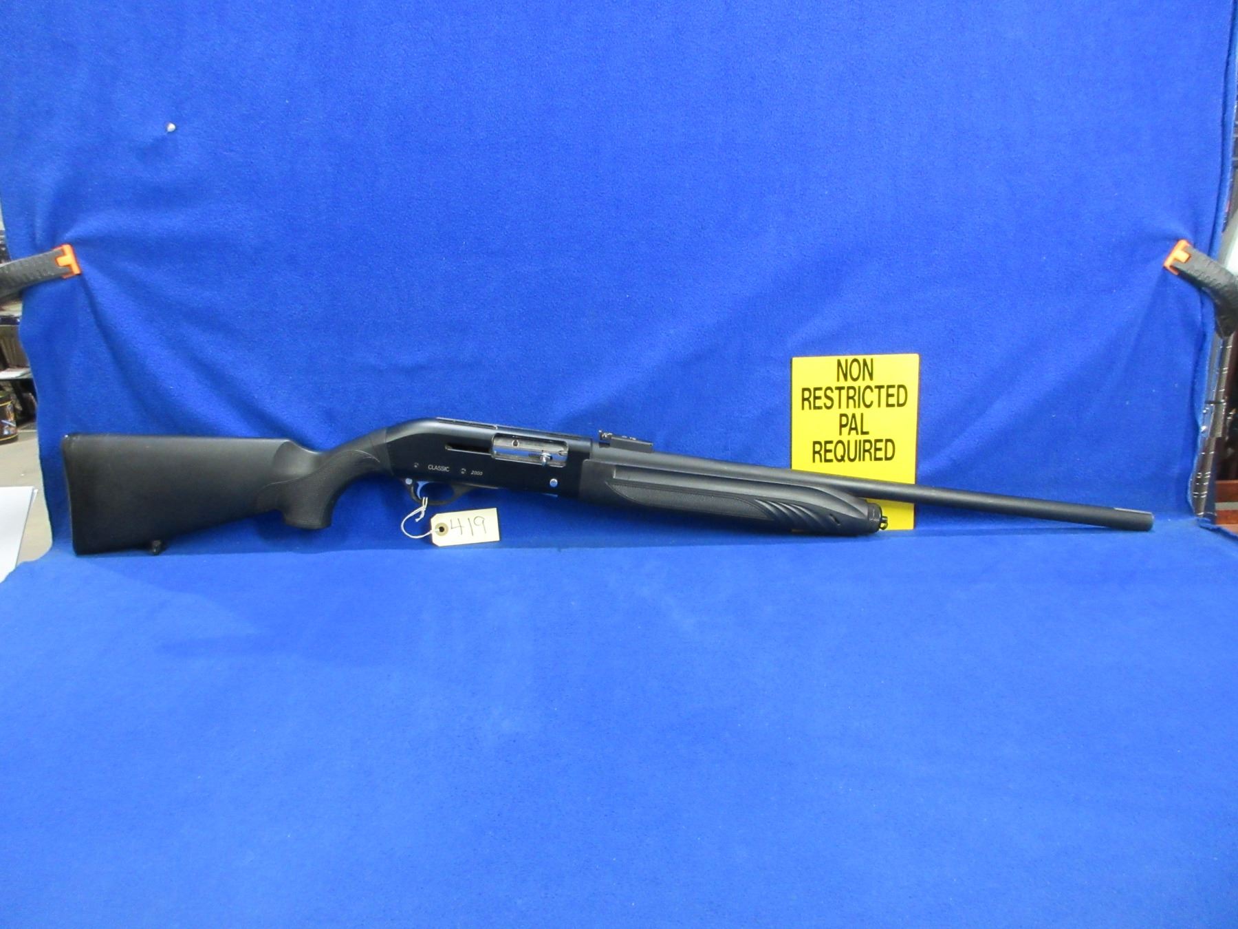 Non-Restricted - Sabatti Classic Model 2000 in 12 Ga. 2 3/4" - This semi-auto shotgun appears to be in good to very good working order. Barrel is 24", bore is good, bluing is good with light scratches, front sight missing but has rear sight, synthetic stock and forearm are good with usage marks, rubber butt pad good, comes with swivels. Ser #A38366