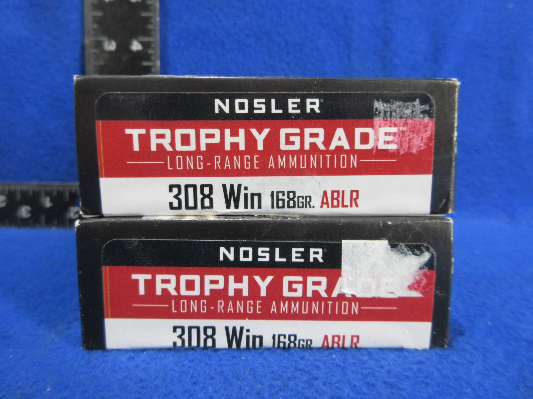 308 Win. 168gr ABLR Nosler Cartridges - 2 Boxes of 20 - PICK UP ONLY