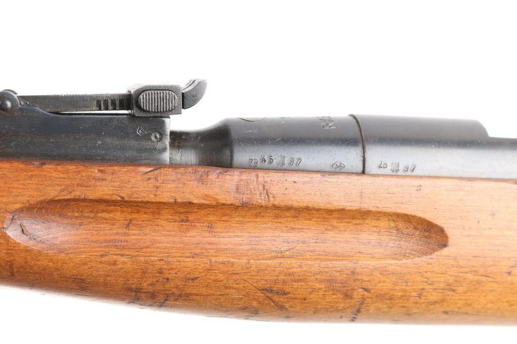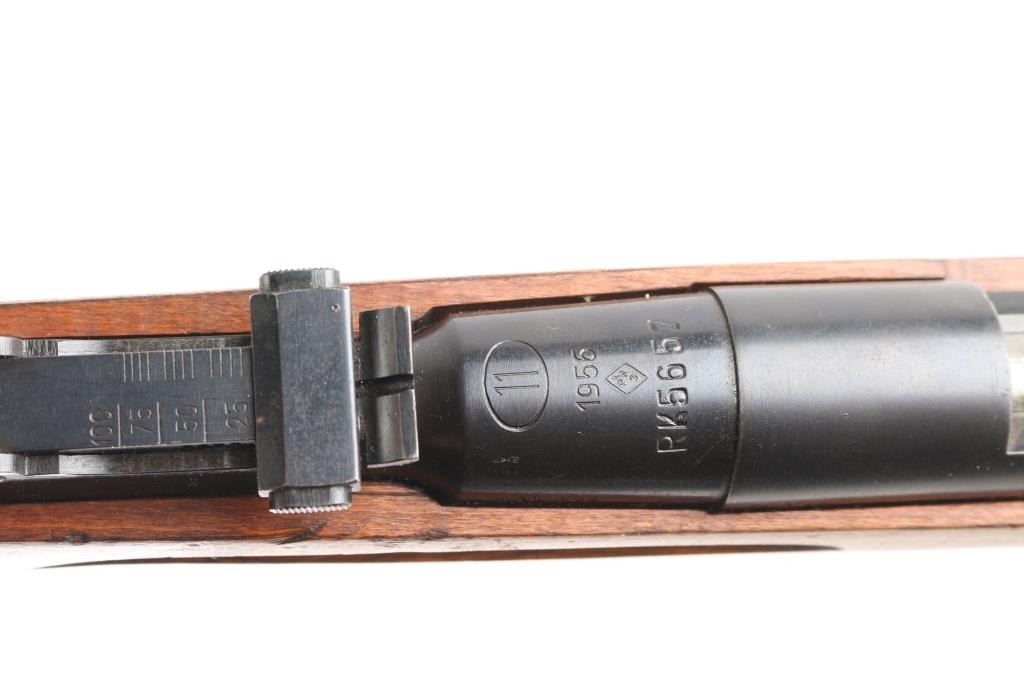 #rk5657. Polish Wz.48 (WZ-48) Training rifle was made in Radom Poland in 1956. These rifles were intended for new recruits and students prior to entering service. Though originally based on a Mauser design it was changed to more closely resemble the Mosin Nagant after WWII. This is a single shot, .22LR rifle. The barrel is 24 ¾ inch long, adjustable post front sight with hood, tangent rear sight, Straight grip wood stock and handguard are very good, minor scratches, blue finish is very good with minor edge wear/scratches, action is smooth, bore is excellent/bright. Imported by Intrac Arms marked on underside of barrel. Serial number matched on chamber and bolt.NRA Condition-Very Good. C&R Firearm.