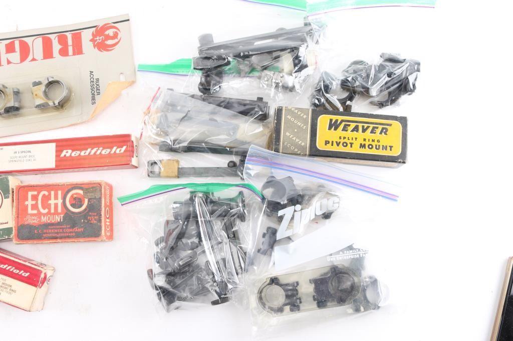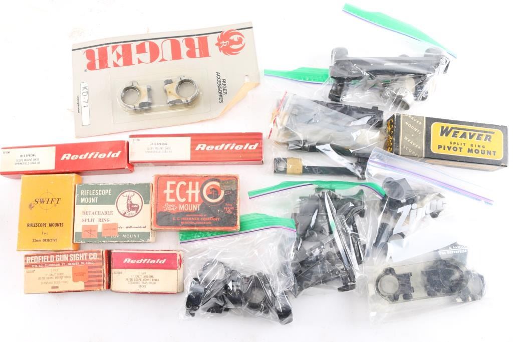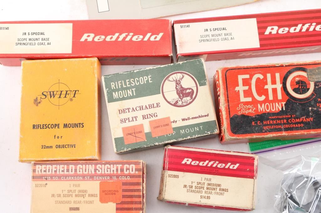 Includes (3)Redfield Intl Match metallic target sights, multiple rings and bases; (1)Ruger KD-71 rings for a Super Redhawk and other scope ring brands such as Weaver, Swift and Echo. Most in very good condition.