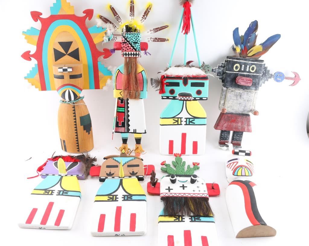Lot 1827 Lot of 10 Large Kachinas and a Headdress.
