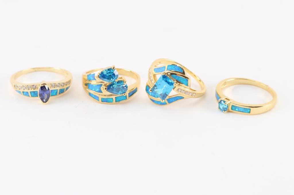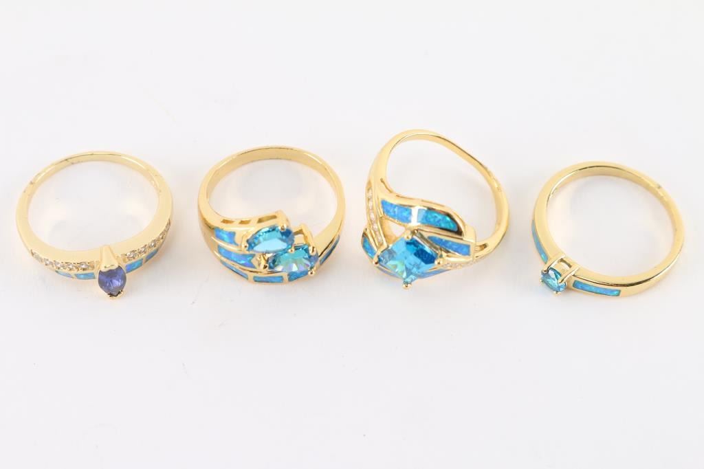 22K gold over sterling silver, with semi-precious stones. Sizes 8 1/4, 8 1/2, two are size 9.