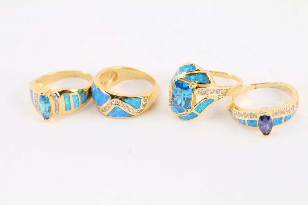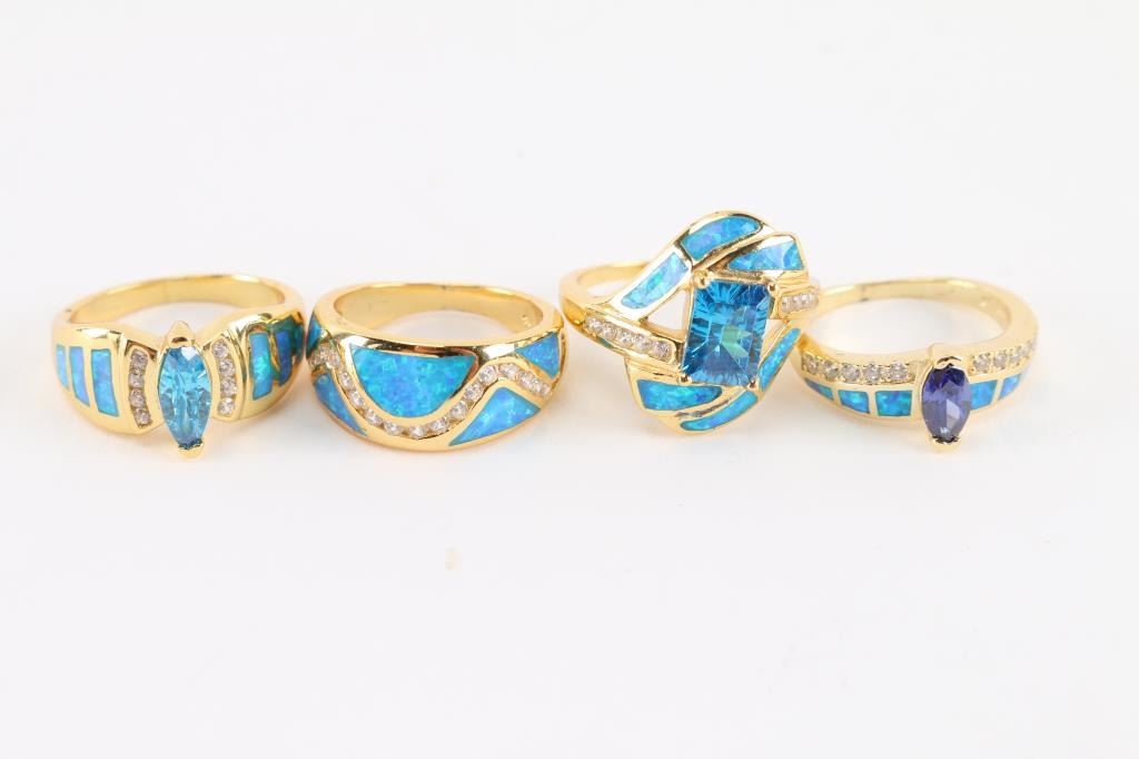 22K gold over sterling silver, with semi-precious stones. Two are size 6, 6 3/4, 7 3/4.