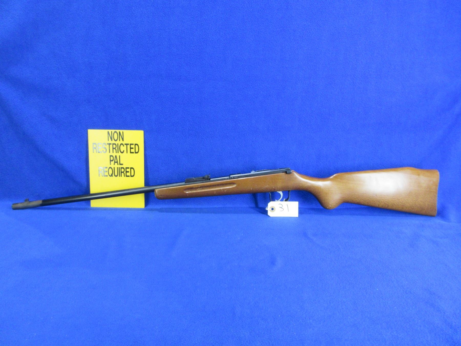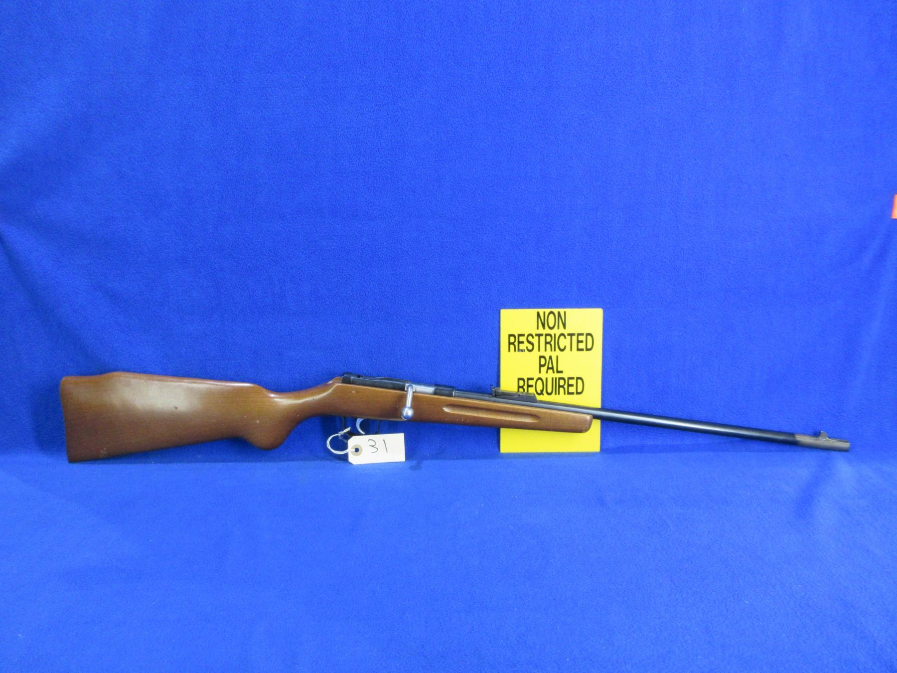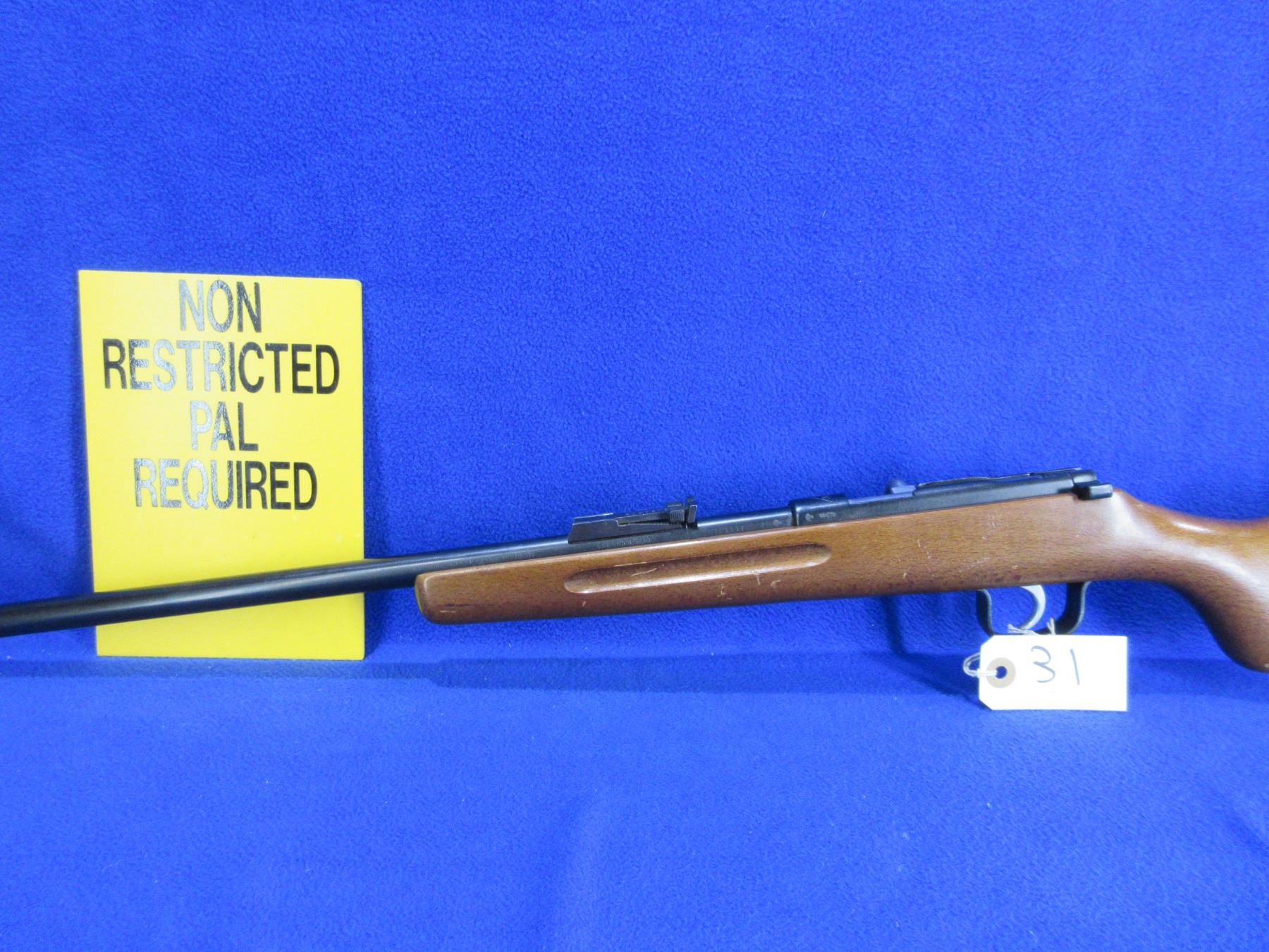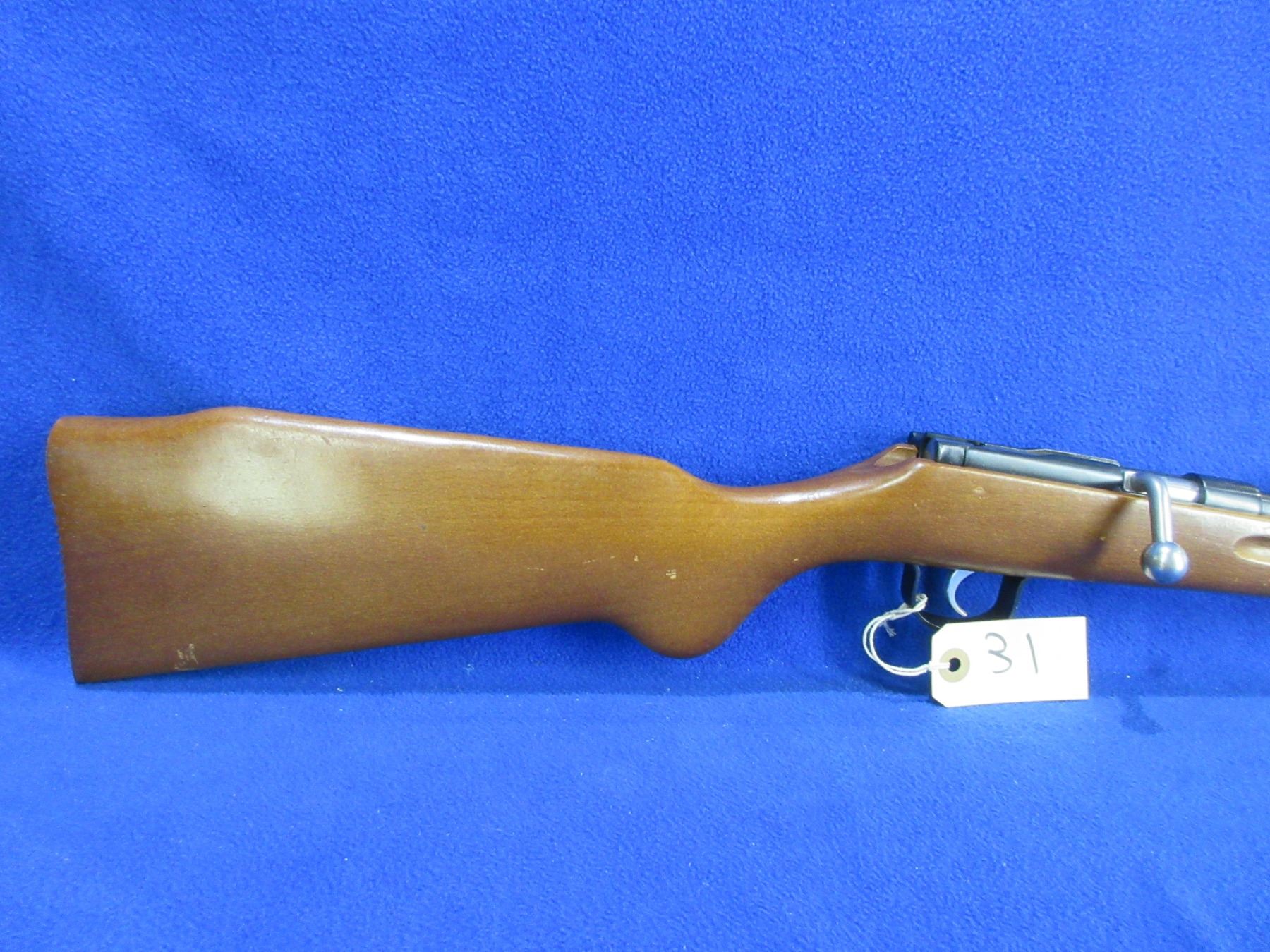 Non-Restricted - Voere Single Shot in 9mm Flobert - This is a single shot bolt action rifle and action appears to be in good to very good working order. Barrel is 21 1/4", smooth bore is good to very good, bluing is gone at the first 3" from muzzle, the rest of the bluing good with light pitting, has both sights, stock is good with usage marks. Ser # 303538