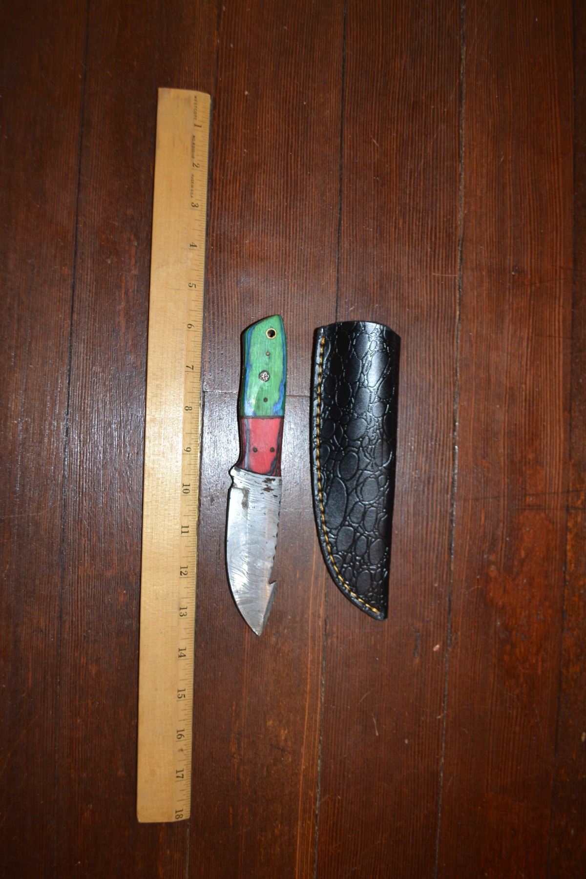 Lot 235 Handmade Damascus Steel Knife & Sheath