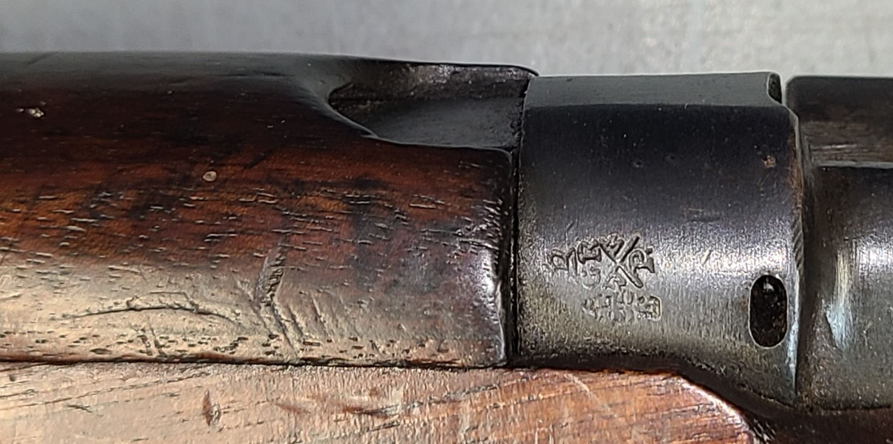 Stock is early type with Volley Sight indentation on left side of lower stock.