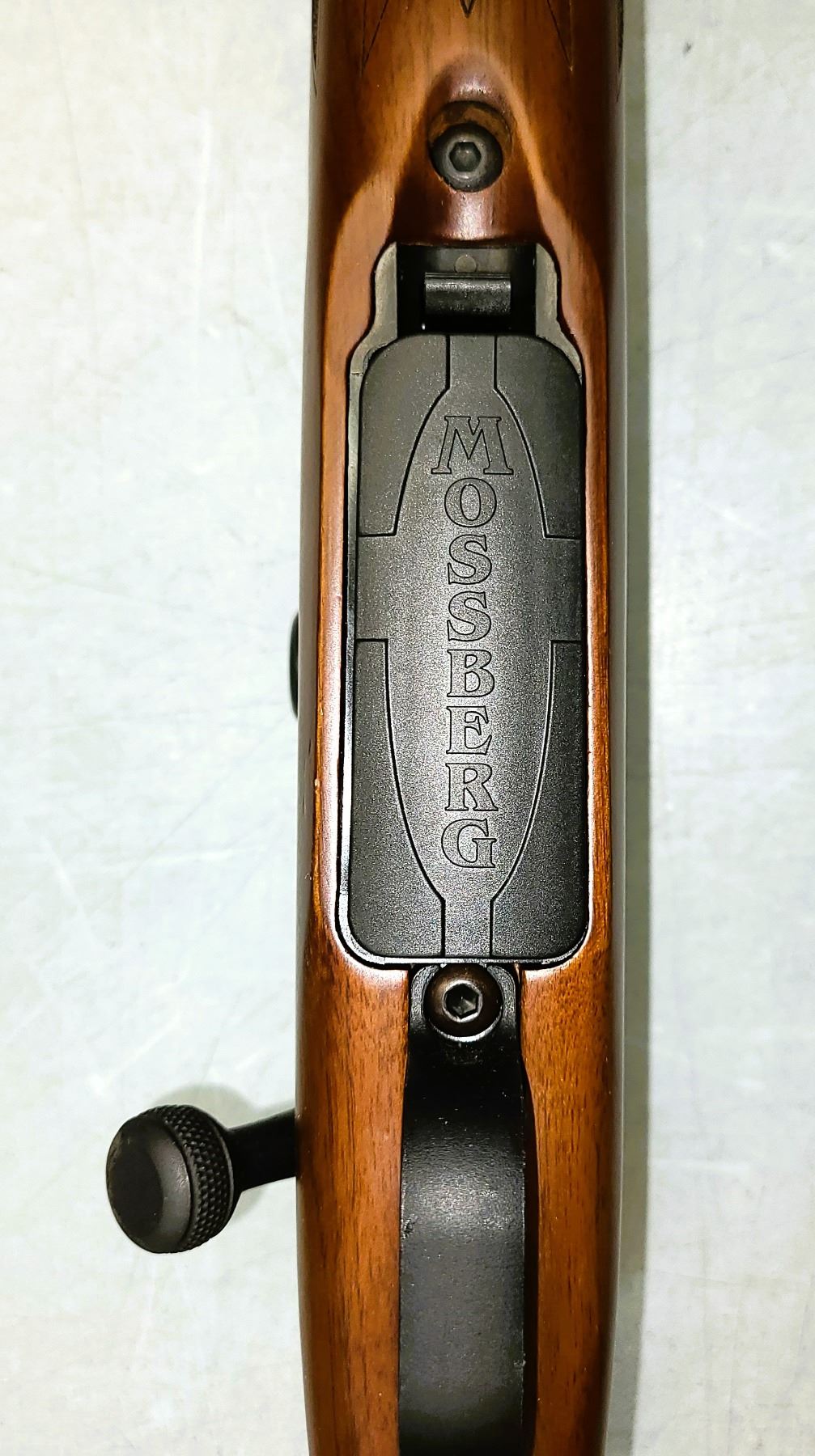 One piece Walnut stock with stipple checkering , pistol grip, standard Mossberg