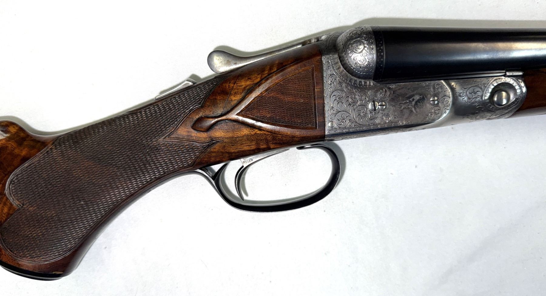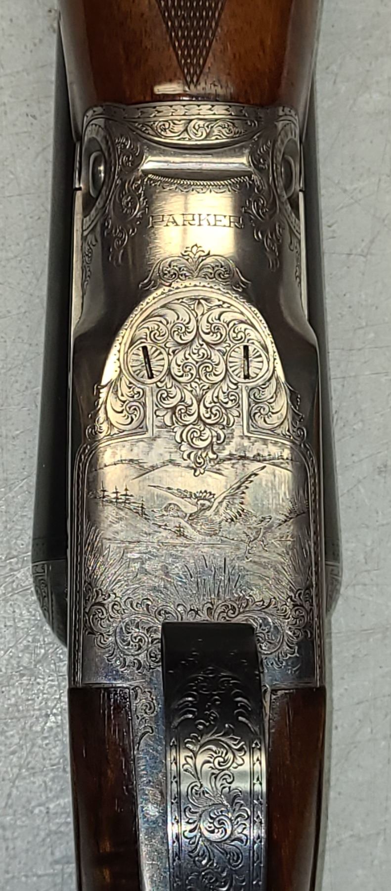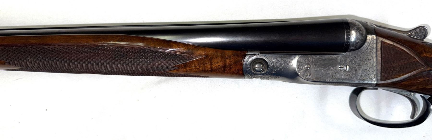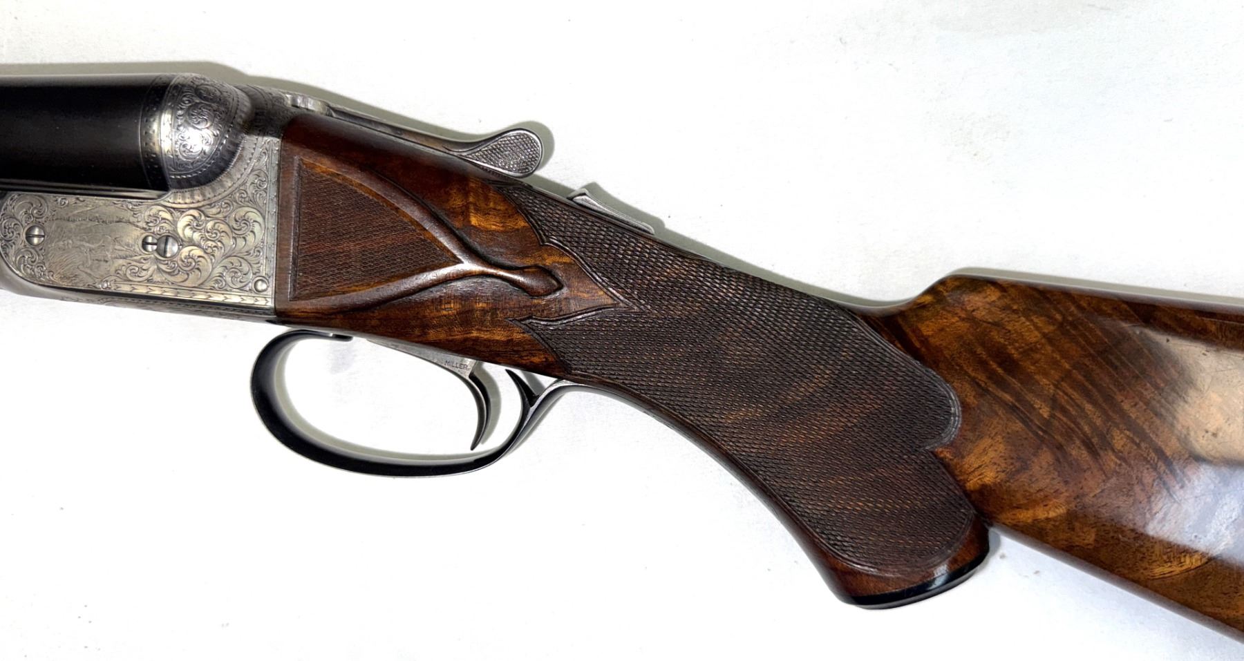 ejectors. The action, break lever, trigger guard and forearm hardware are engraved