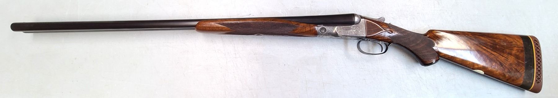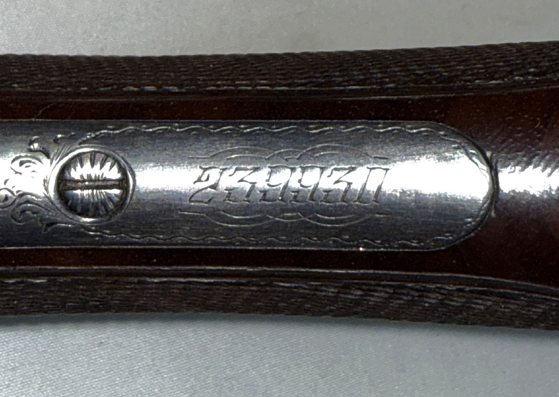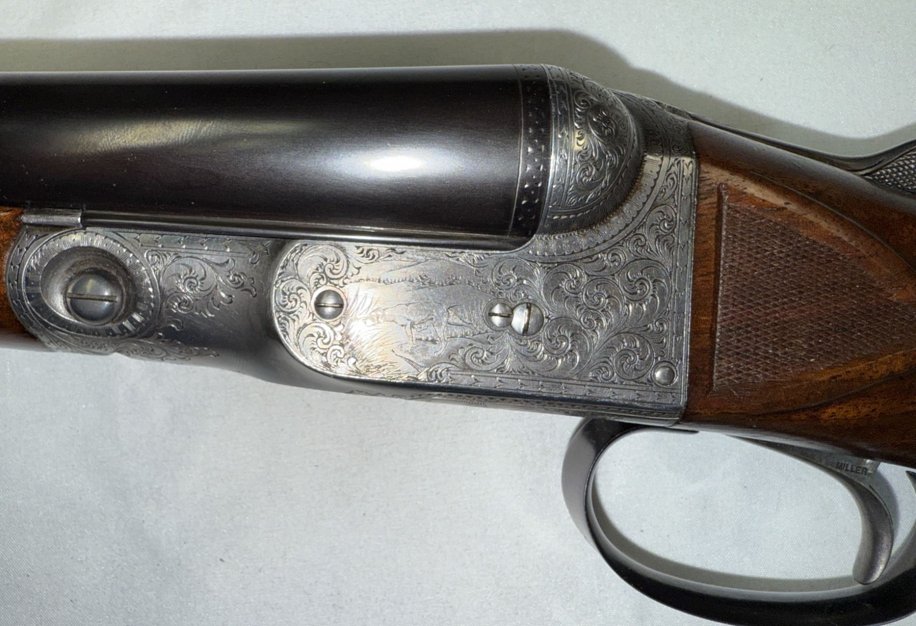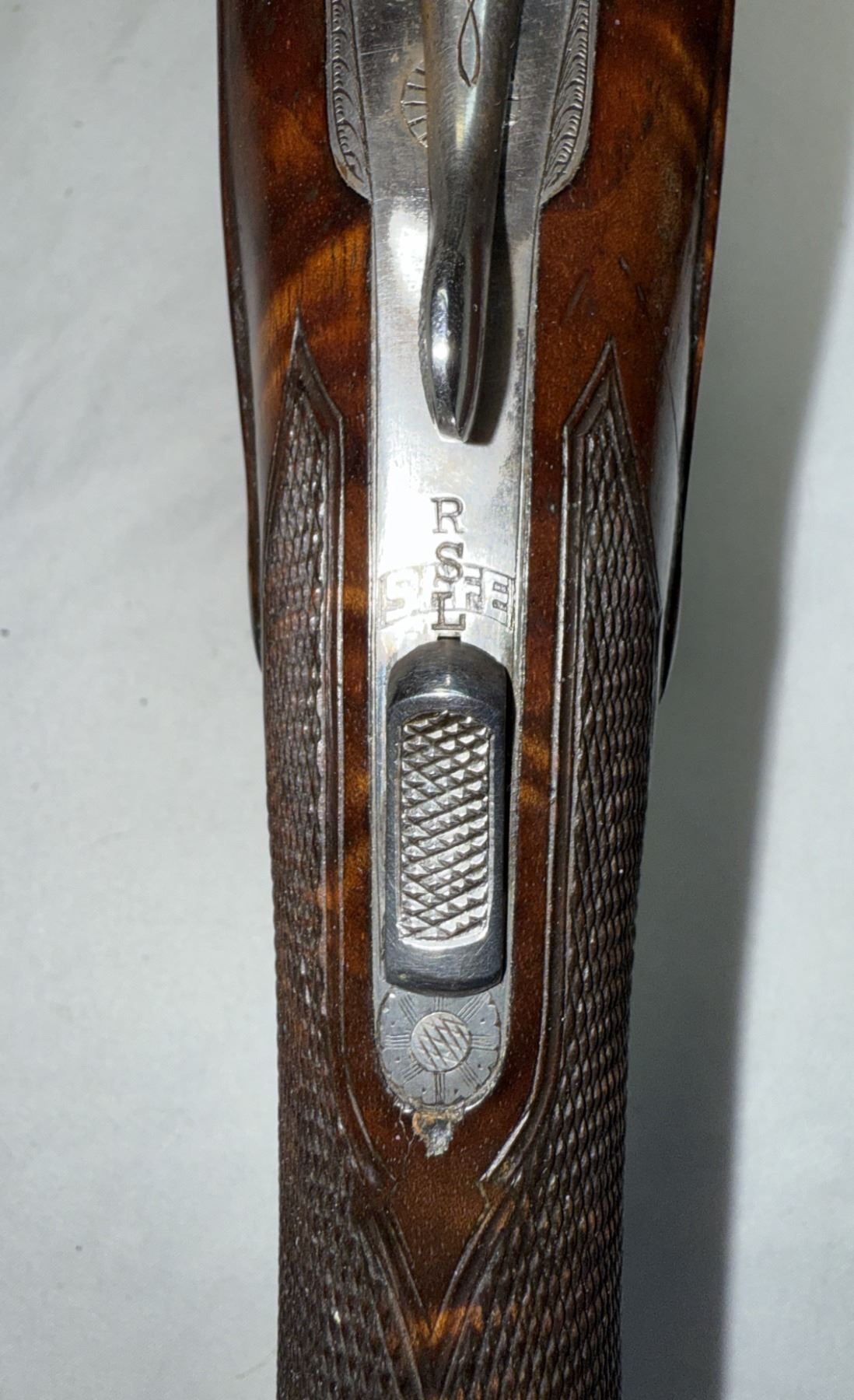 ejectors. The action, break lever, trigger guard and forearm hardware are engraved