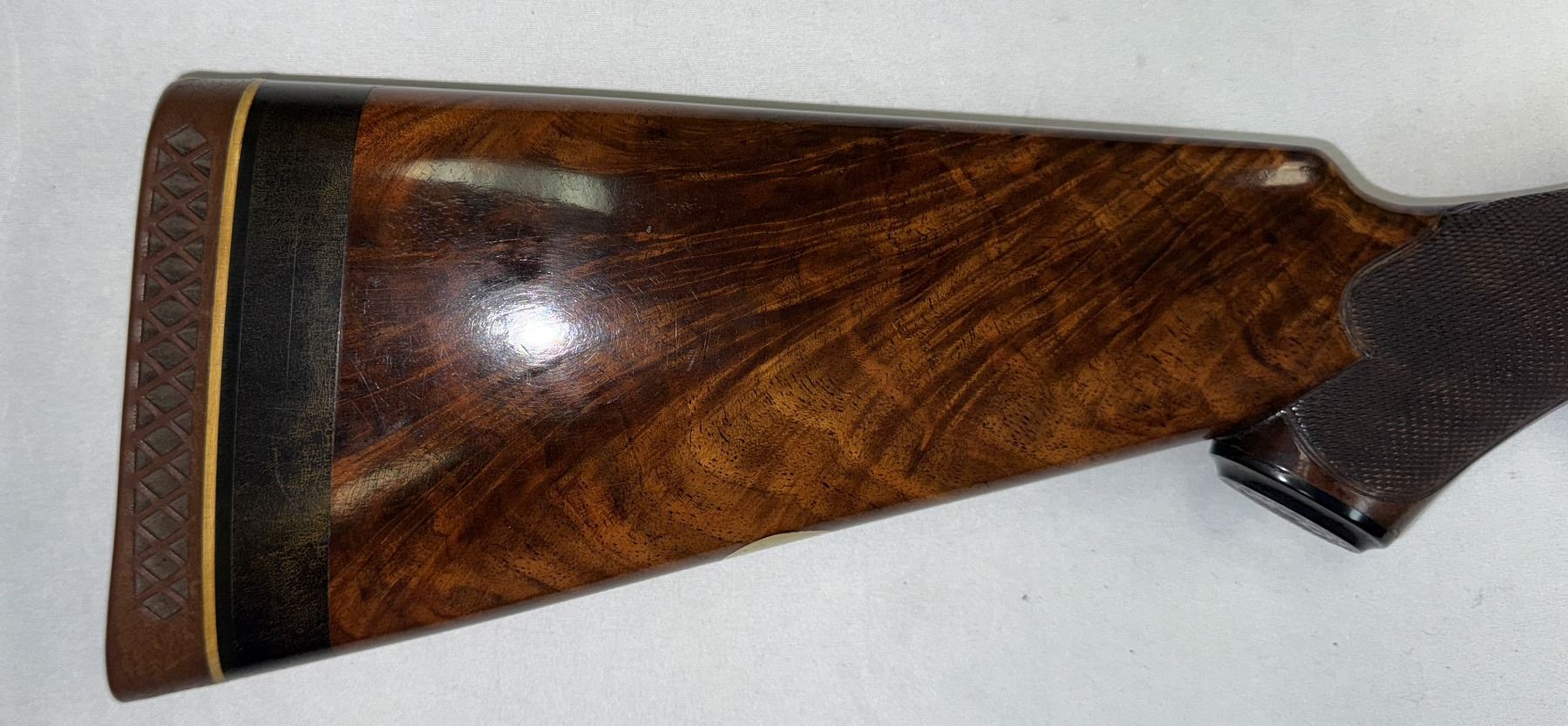 in gold and pull extension and soft rubber butt pad.. The checkering has decoratively