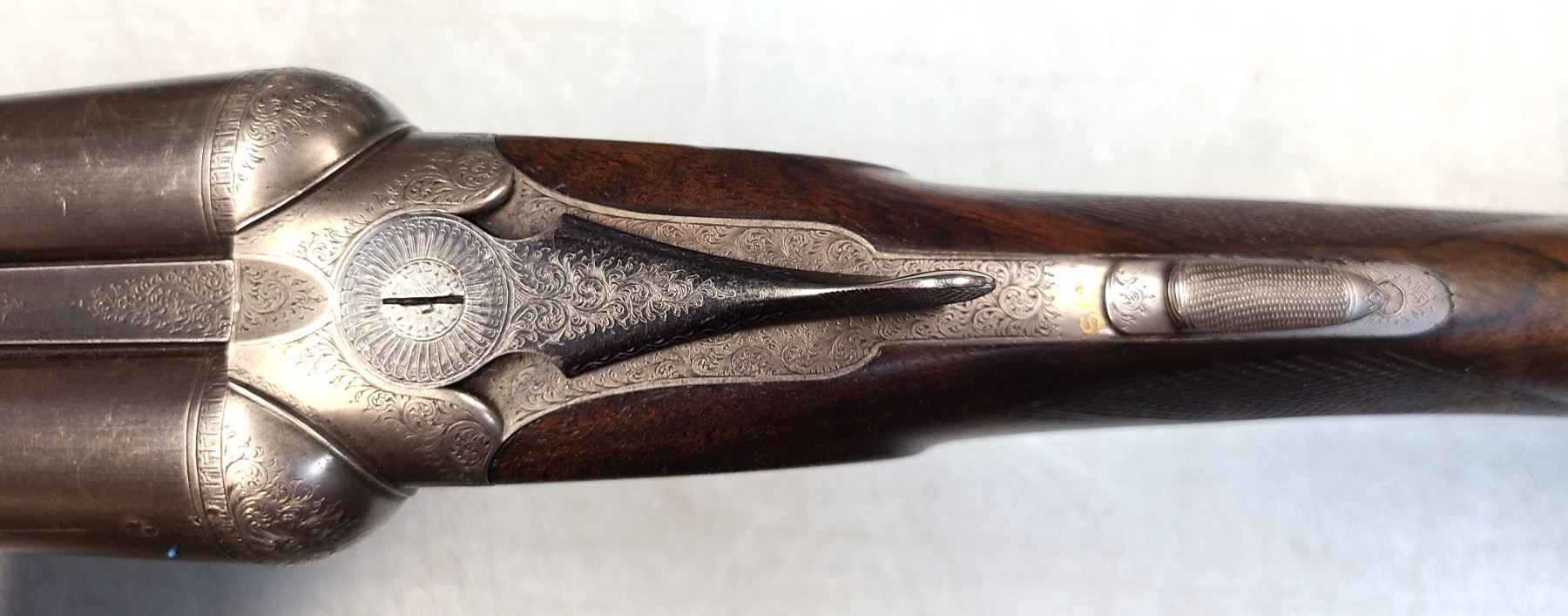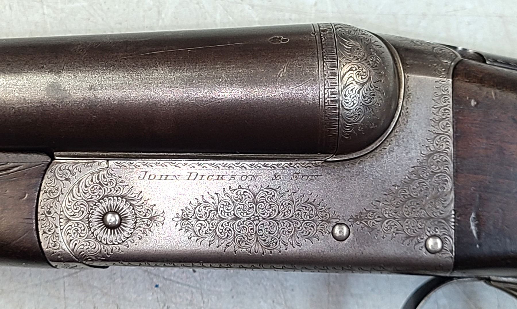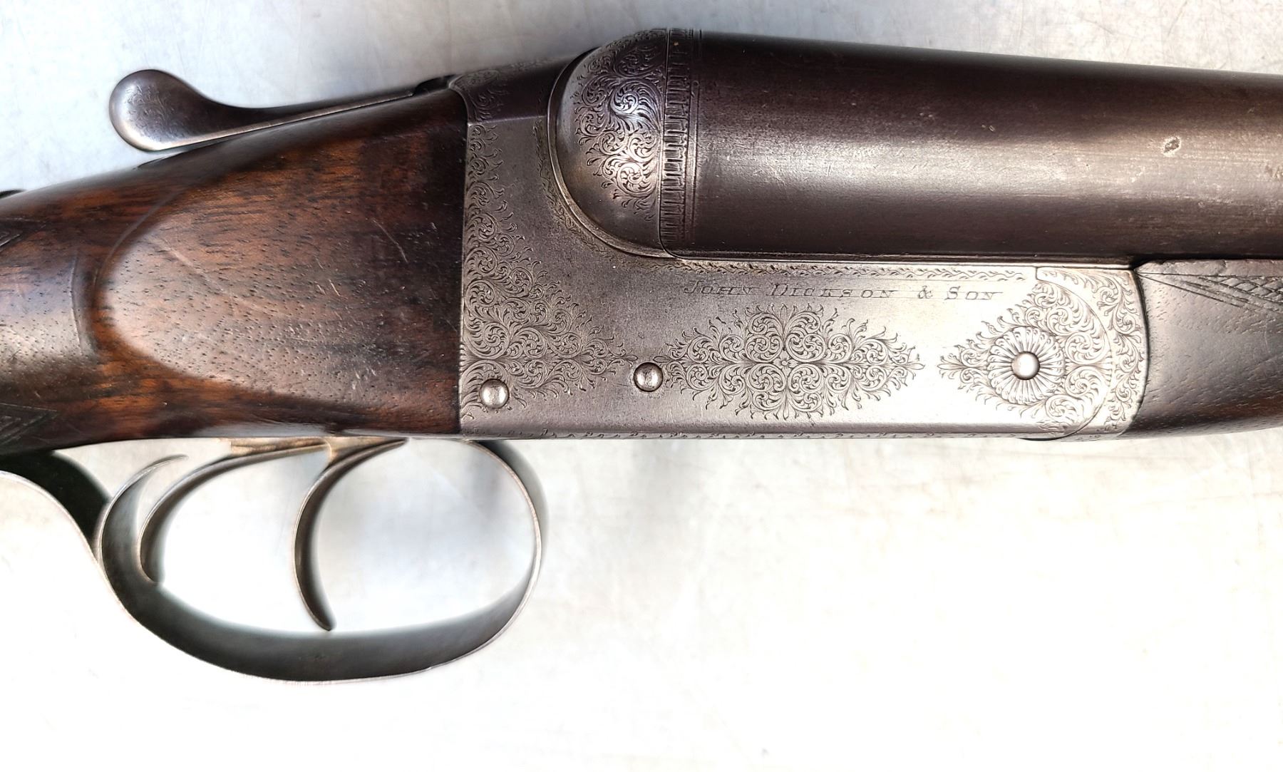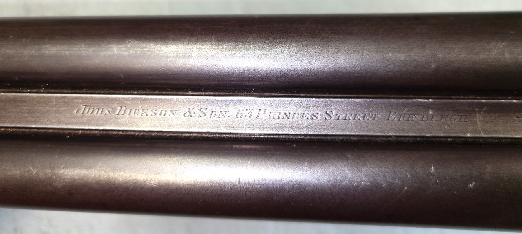 Dickson & Son engraved in banners on the side of the action. The barrels measure