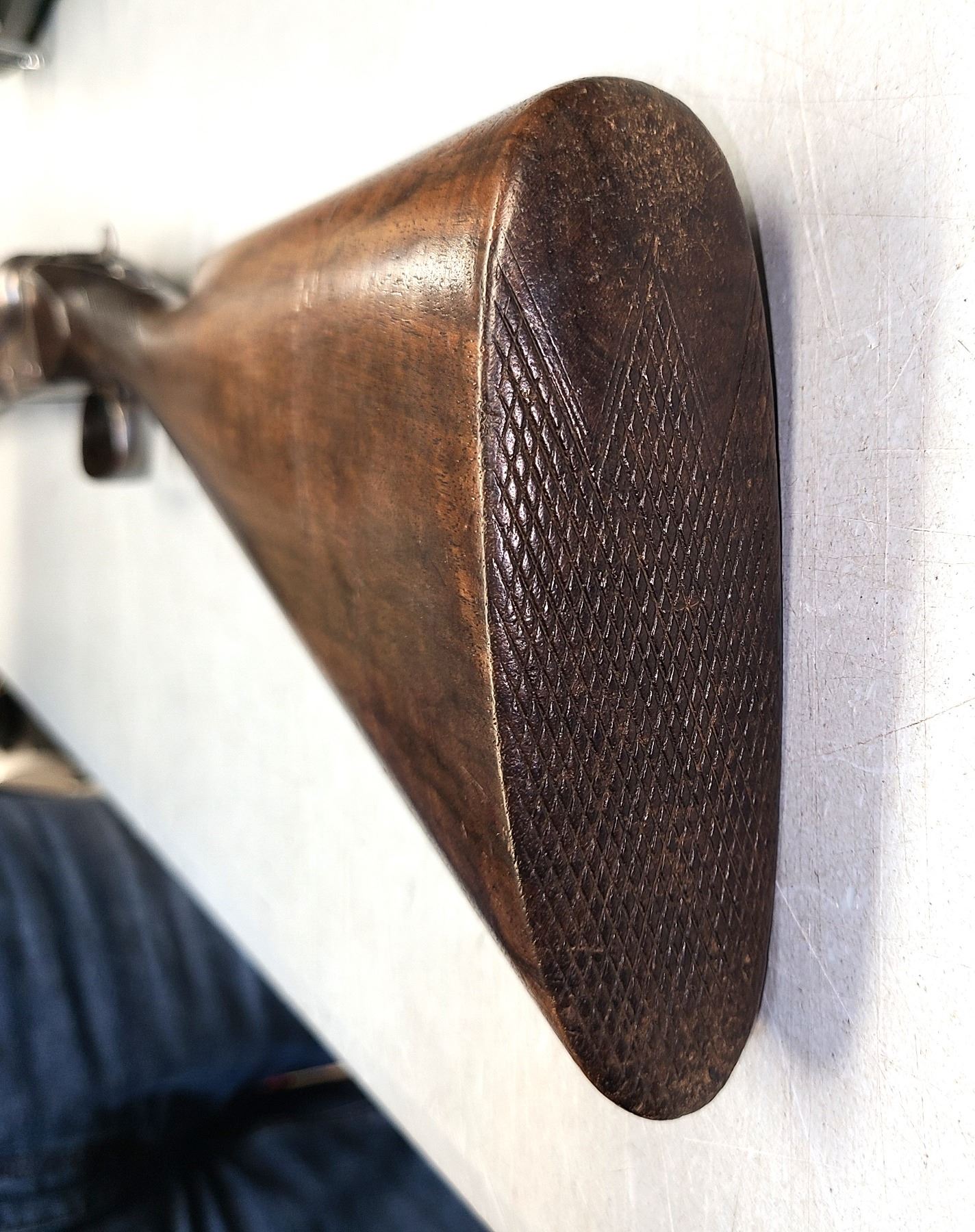 The gun is fitted with a figured stock which is in excellant condition. No cracks and a
