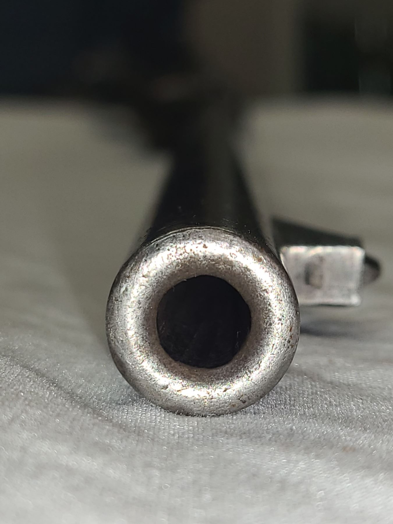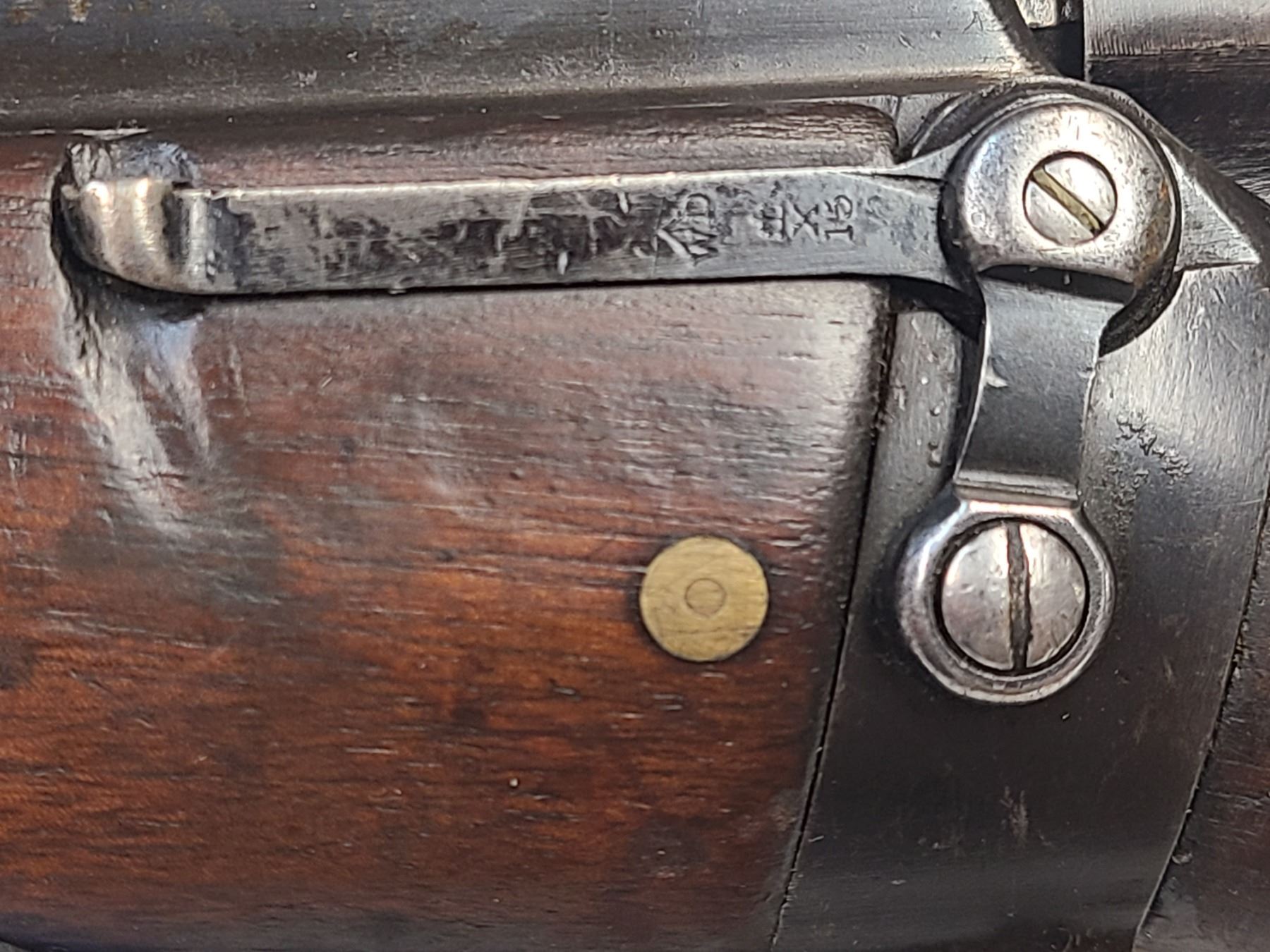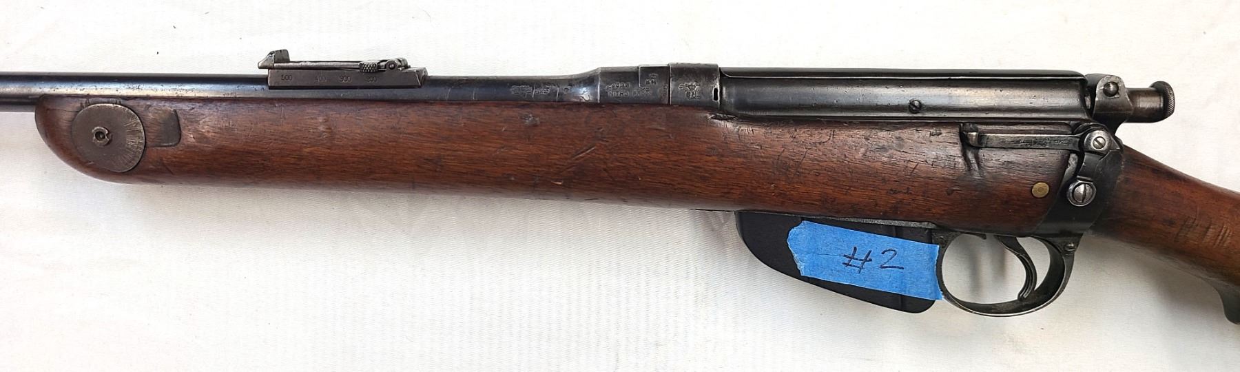 30-inch barrel with ramp fore sight, folding ladder rear sight, the receiver side wall