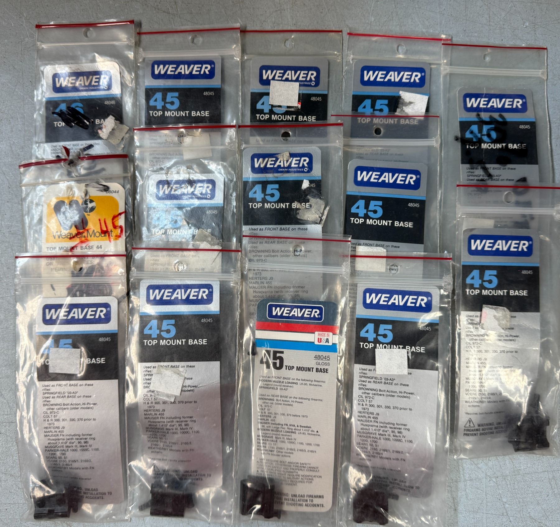 Lot 305 Weaver No 45 Scope Bases as Shown - 14 pc - NEW