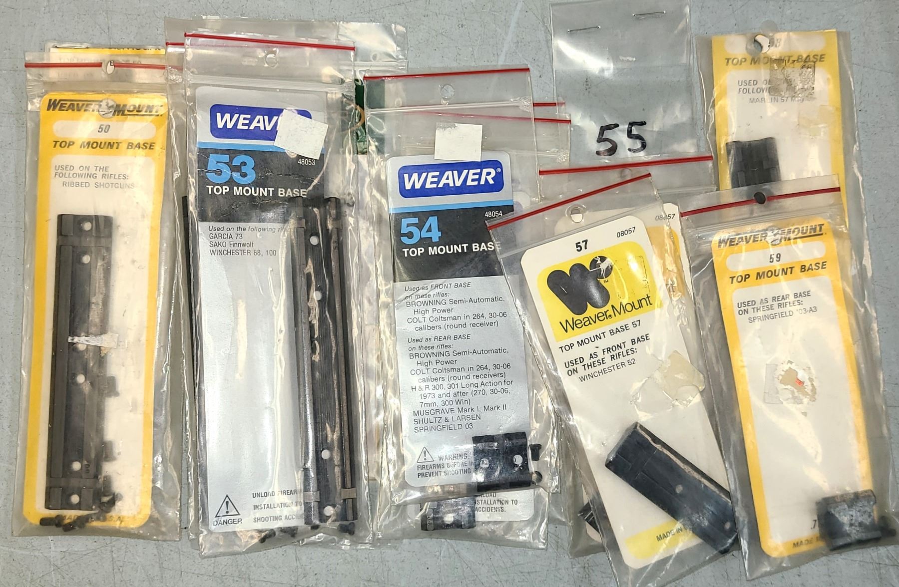 Weaver No 50, 53, 54, 55, 57, 58 & 59 Scope Bases as Shown - 13 pc - NEW